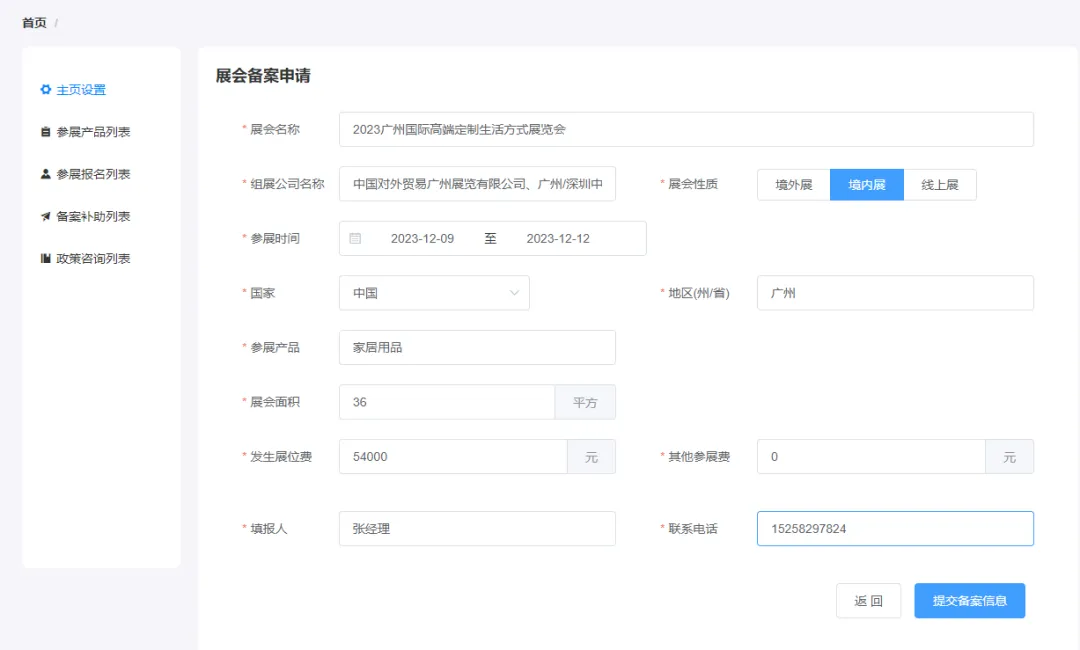 五是数据统计更精准。政府部门通过展会通平台,汇总企业参展信息,了解企业参展动态,政策补助预算决策更加精准高效。