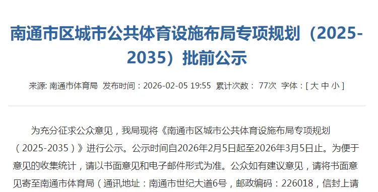 规划公示期为2026年2月5日至3月5日,这份规划不仅关乎一座场馆的未来,更描绘了南通全民健身事业的整体蓝图。