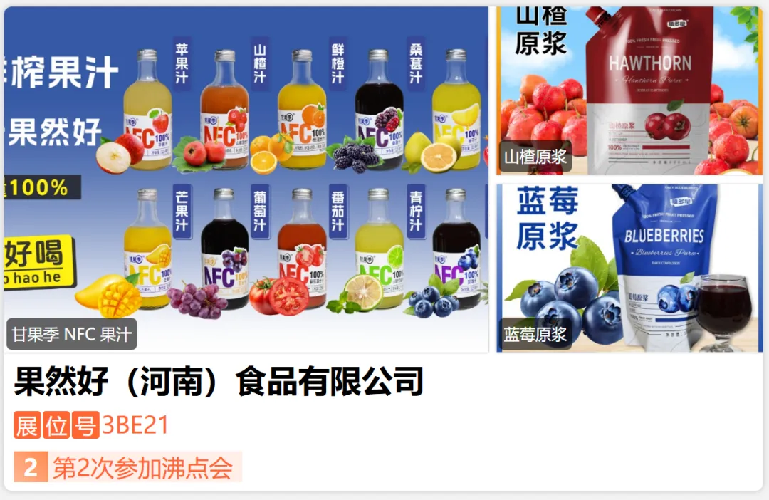 果然好(河南)食品有限公司是一家专注于健康饮品研发与生产的现代化企业,占地 29 亩,拥有玻璃瓶、塑料瓶、自立袋等多条生产线,具备规模化生产能力,支持从原料清洗、榨汁到包装的全流程管控。公司以 “天然原料 + 创新工艺” 为核心,主打 NFC(非浓缩还原)果汁、植物基饮料等品类,旗下拥有甘果季和植多星两大自主品牌,产品覆盖餐饮、商超、电商等多渠道。-展位号:3BB07-