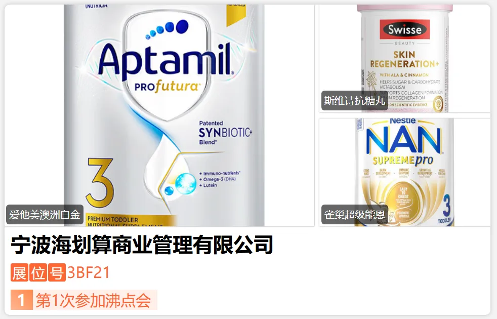 海划算背靠宁波奥利戈跨境电子商务有限公司,10年来聚焦母婴保健产品等零售业务,凭借着精细化的电商运营能力,完善的供应链管理,赢得了平台及品牌的高度认同,目前已成为中国跨境进口B2C的领军者还是佳贝艾特跨境版全球总代。合作近189+个品牌,自采货盘1000+sku,涵盖奶粉、个护、营养保健、洗护等多类目货盘优势全面,合作分销商700+,月平均分销2000万,客户单店销量650万,月均备货70万件。-展位号:3BB01-