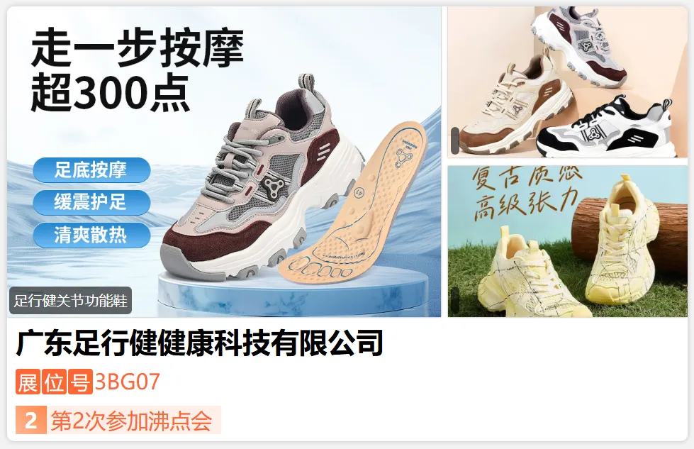足行健创立于2012年,是一家专注健康鞋研发、销售及品牌运营于一体的健康科技创新型企业。秉承着“愿世界更健康,让健康更简单”的理念,深耕健康鞋行业10余年,科学地将足部反射区健康法、中医经络、足生物力学、磁石四大原理和抗菌防臭技术融入产品研发中,先后获得国内外40余项专利技术,荣获“国家高新技术企业”、“新华社民族品牌工程”等荣誉,并入选中国工信部产品推荐目录。-展位号:3BH18-