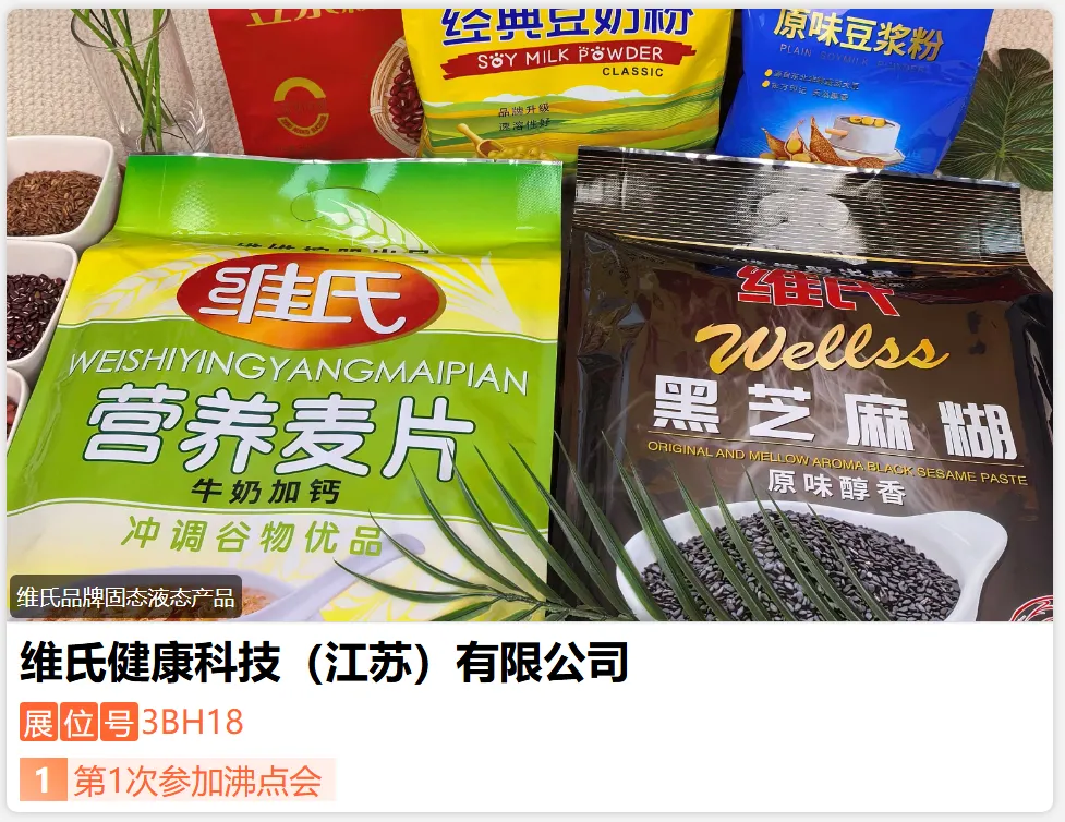 维氏健康科技(江苏)有限公司隶属于维维控股,从1989年打造家喻户晓的国民品牌“维维”,到现在倾力打造国际化品牌“维氏”,三十七载,我们在植物基食品领域深耕不辍。维氏健康以”科技服务人类健康“为公司愿景,全面提升全系产品品质,精选好原料,打造好产品。产品包括豆奶粉、豆浆粉、麦片、芝麻糊、米糊,以及多种包装形式的液态植物蛋白饮料、汽水等。-展位号:3BC25-