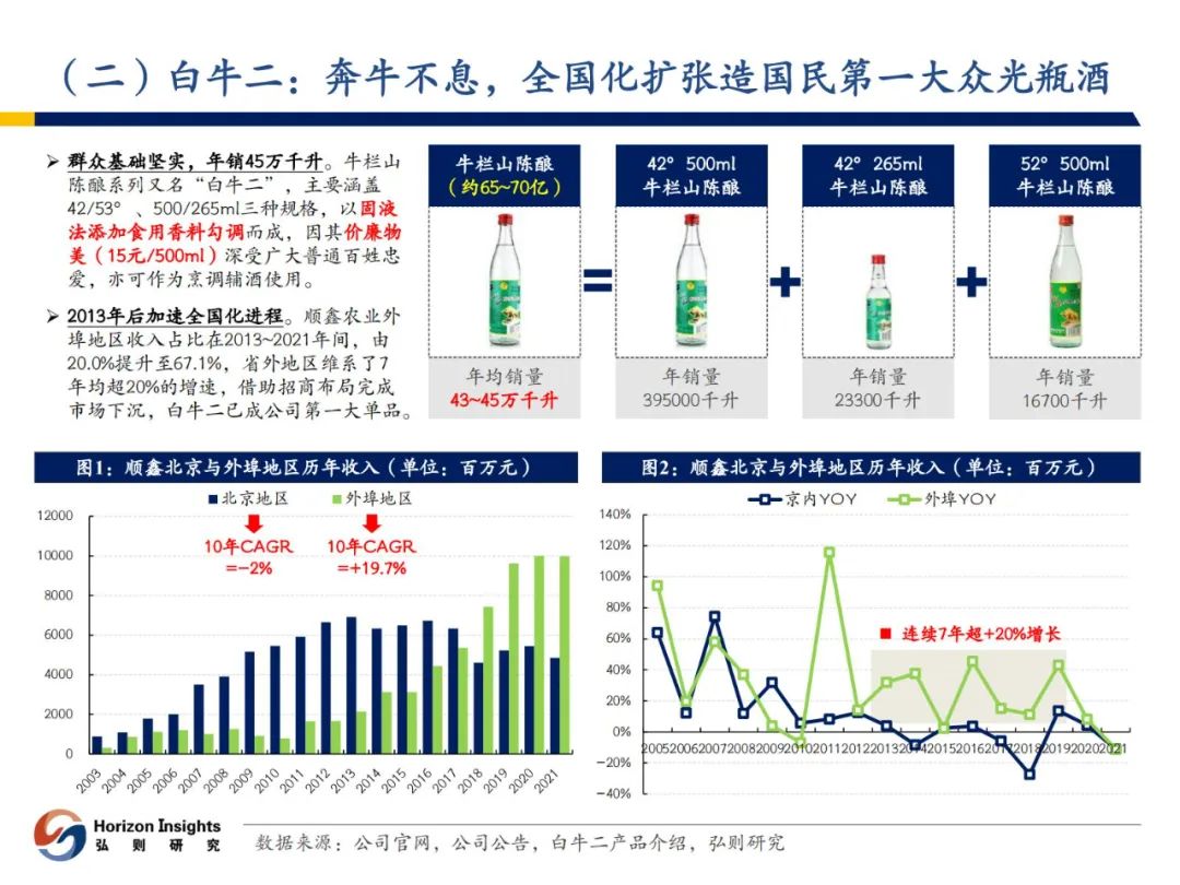 (2)白牛二:国民白酒中的“可口可乐”,极致性价比与渠道渗透力,全国化期间外埠维系7年超20%增速,牛栏山亦是大众光瓶酒第一品牌;