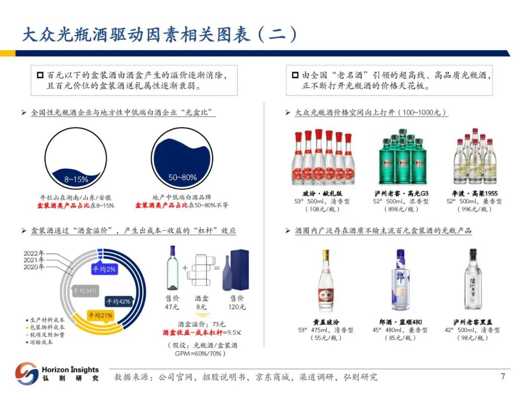 (1)高成长性:裸瓶白酒作为千亿级赛道,其扩容增速高于白酒行业整体,呈现出清晰的“减量升价”趋势,且具备一定的“逆周期”属性;