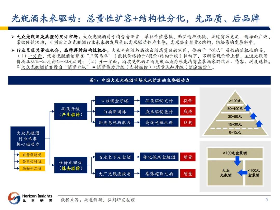 (2)主流趋势:大众光瓶酒基础价带上移,低线光瓶酒量价齐升,高线光瓶酒初露头角;