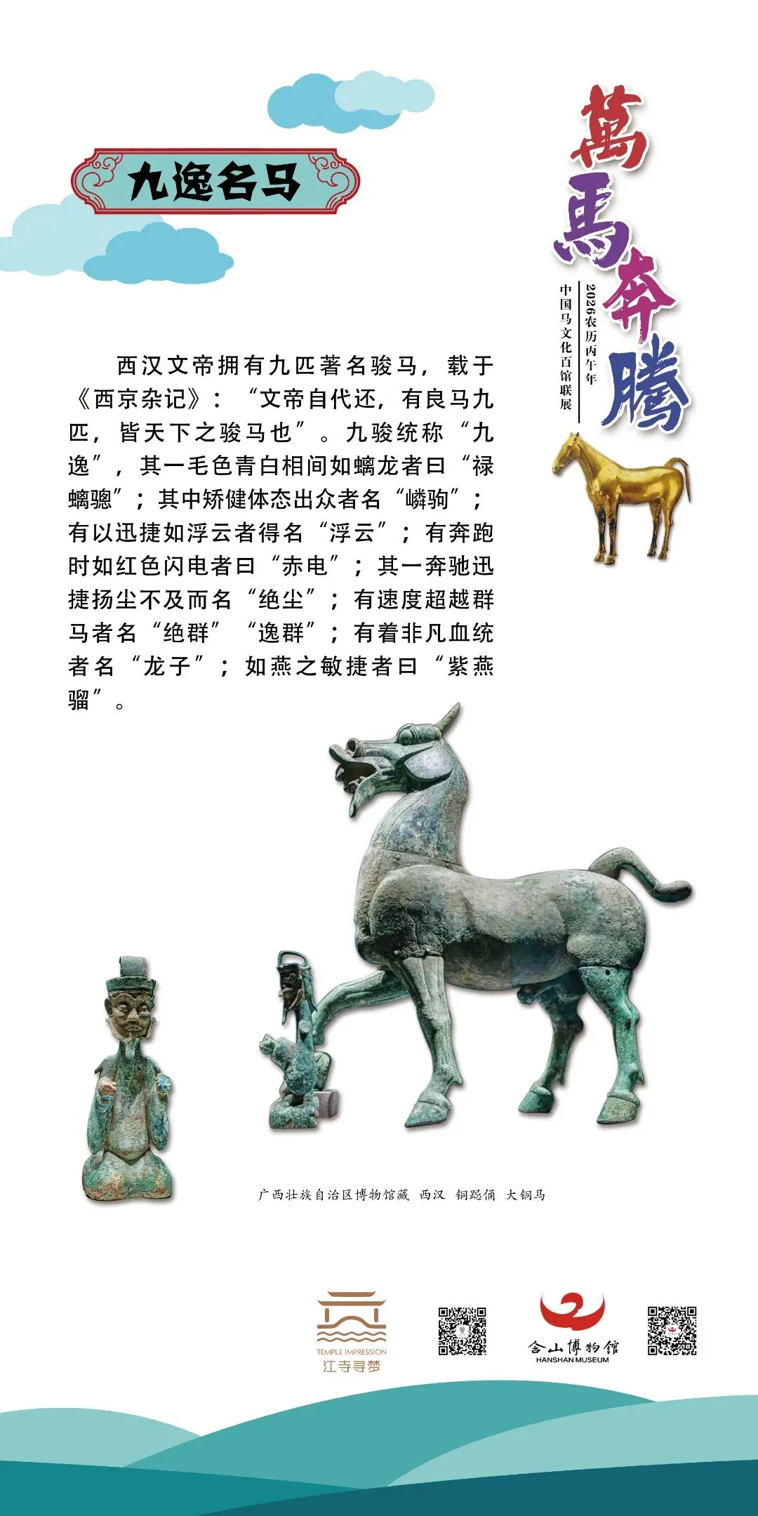 在 “辰篇”中,我们将聚焦马在汉代的名马传奇、艺术巅峰与礼制军阵,透过踏雪乌骓、九逸名马、马踏飞燕及临淄马阵等文物与史料,讲述马如何成为汉代王权象征、艺术瑰宝与军事底气,带你读懂汉代马文化的璀璨与鼎盛。