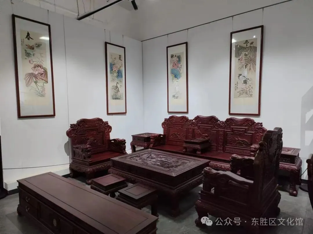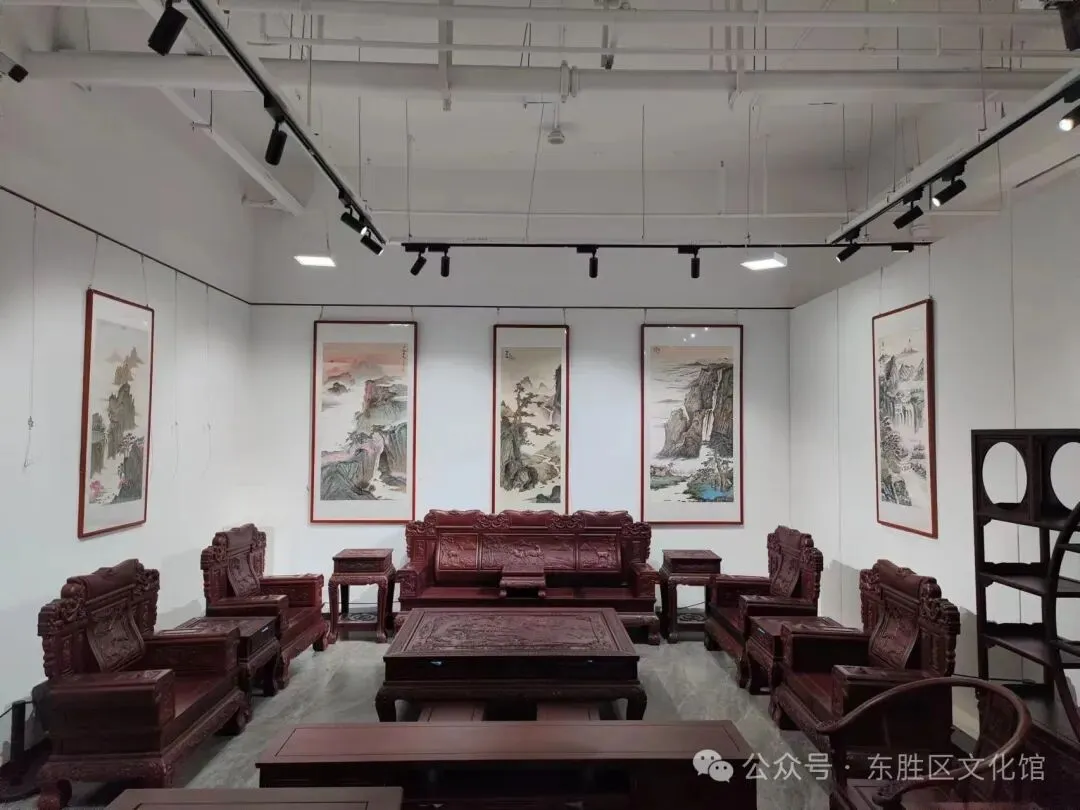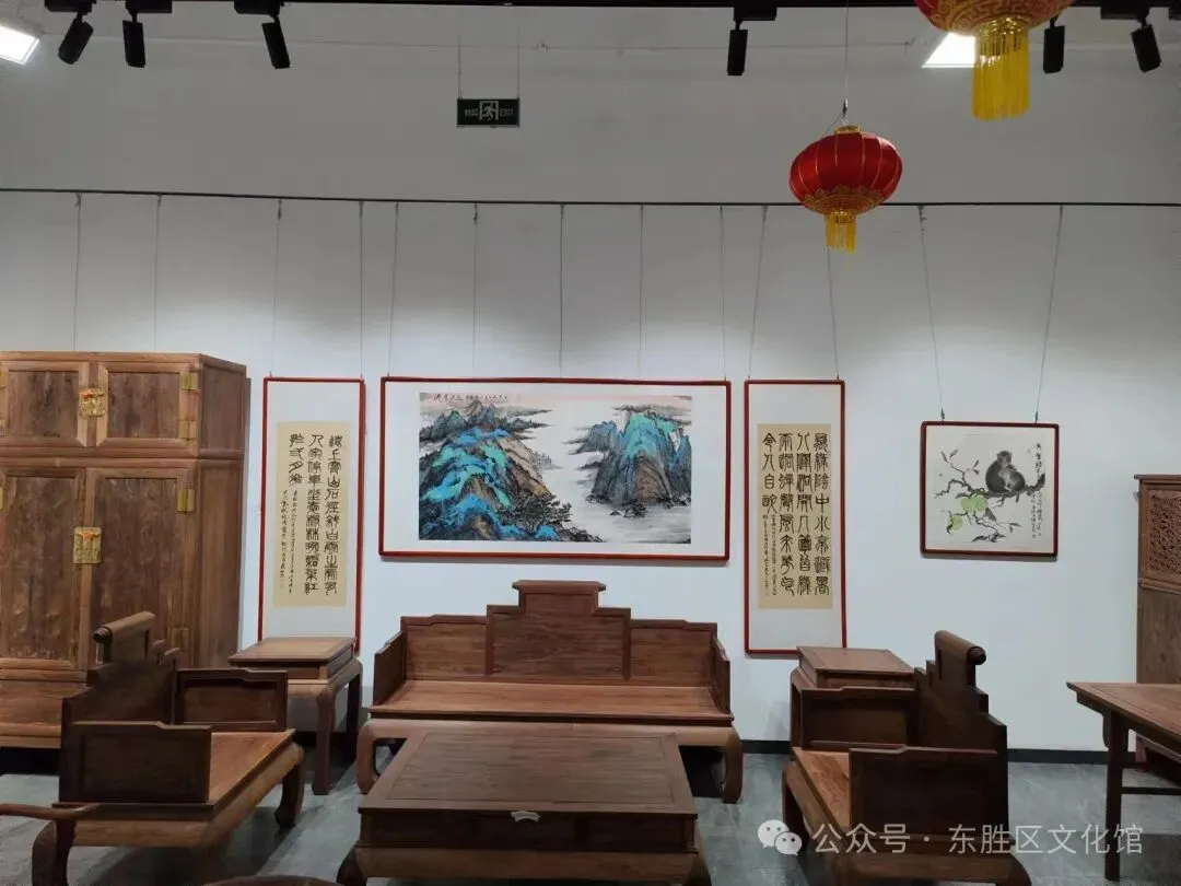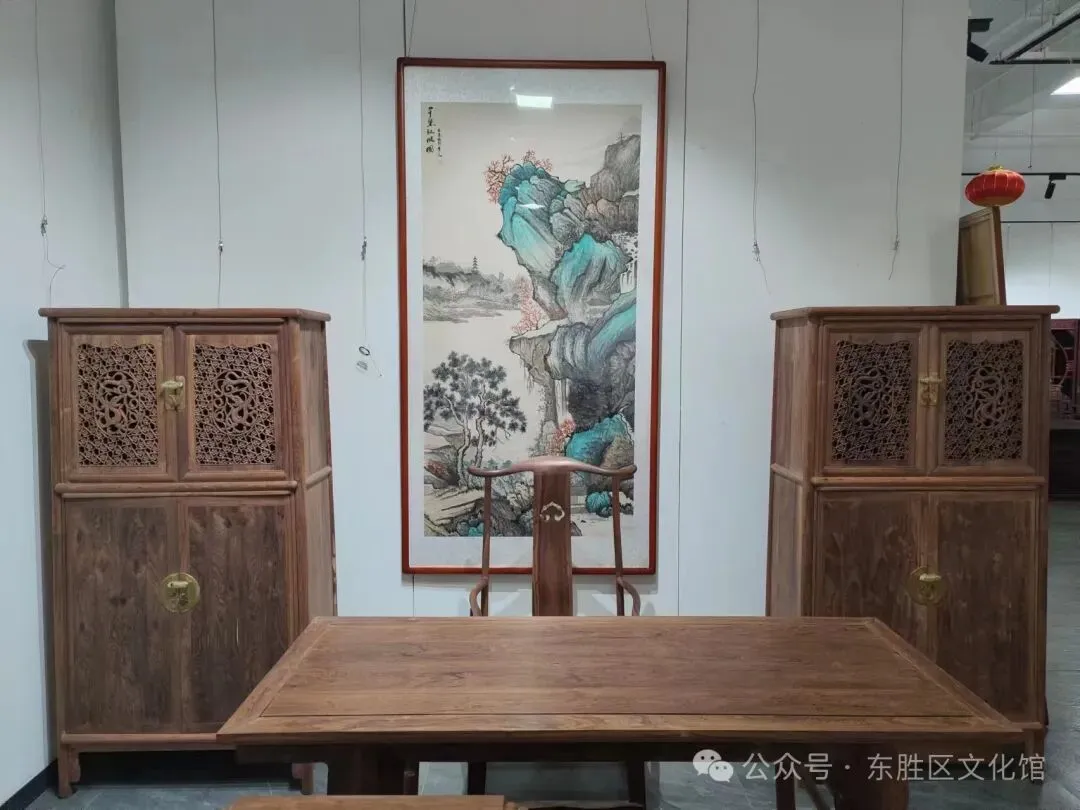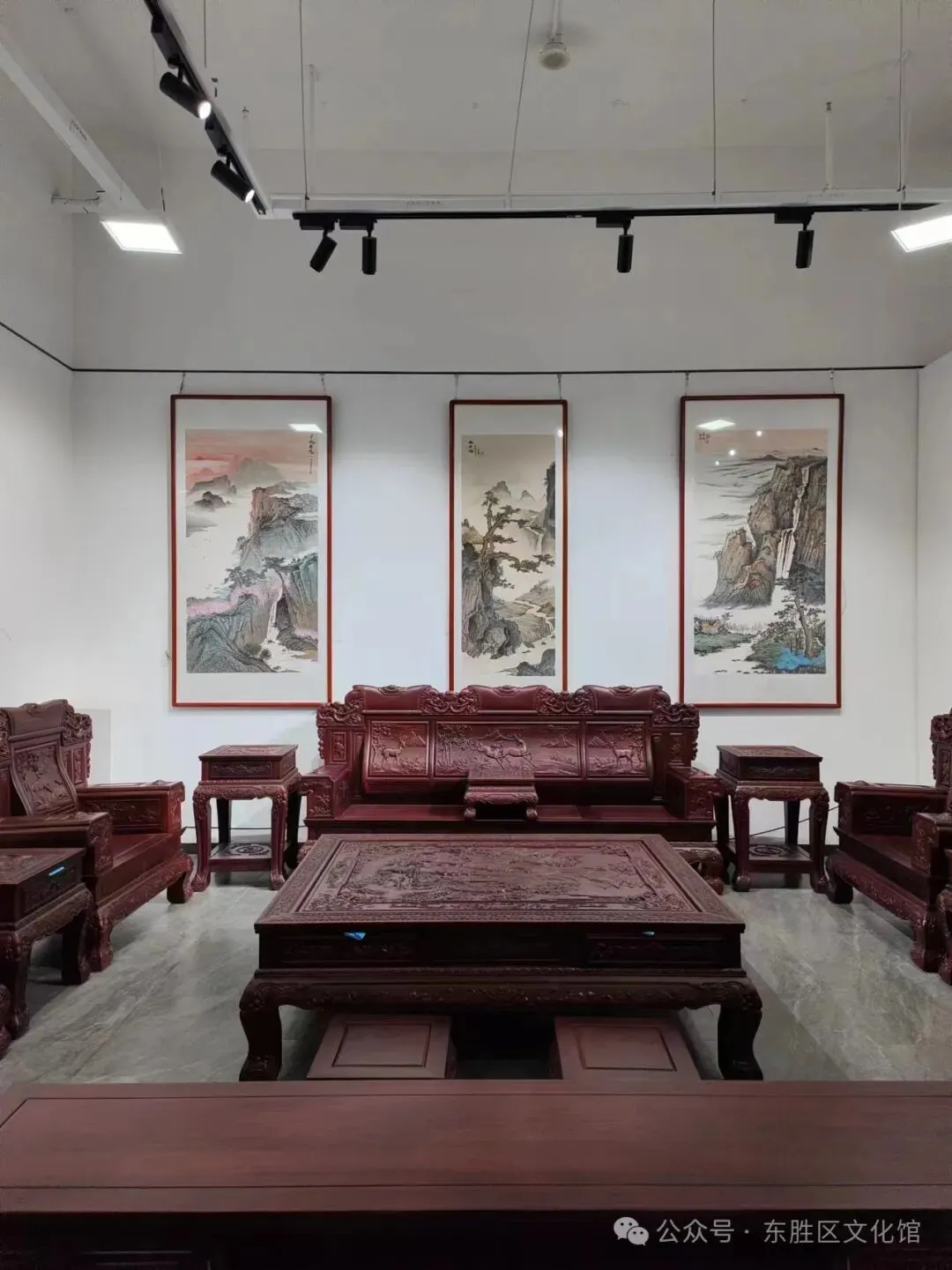 本次活动的举办,旨在让中国花鸟画,山水画,书法与巨丰堂红木相互映衬,国艺融合,文化赋能。两种优秀文化的交集,既能激发出东胜画家们新的创作灵感,营造新颖的中国书画美学,又可以让书画文化加持红木文化。本次当代中国书画惠民展,作品艺术风格各具特色,但对中国书画守正创新的方向和目标却是同出一辙。在本次展览中,观众可以从或细腻或粗犷、或写意或工笔等不同的笔墨中,去欣赏东胜画家的湖山烟霞之美,品味山水画静中有动的千般意境,感受世俗之外的情趣和诗意。广州巨丰堂红木,多年来积极传承红木文化,融合传统与现代风格,打造独具风韵的新中式红木家具,与中国书画不断推陈出新的风格有着异曲同工之妙。本次展览,结合书画艺术与红木文化,两者相互映衬,不仅丰富了人民群众的艺术审美和精神需求,又能有力传承、弘扬中华优秀传统文化精神。