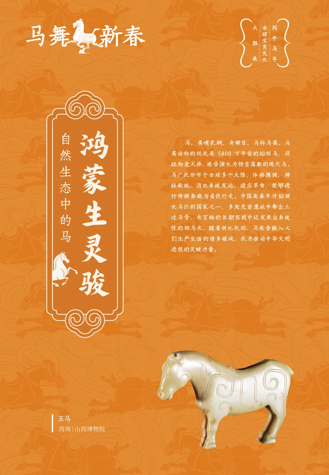 2026年是中国生肖纪年中的丙午马年,州彩陶馆(州博物馆)将举办由国家文物局指导,中国文物报社联合甘肃省博物馆联盟及国内50多家文博机构共同策划新春特展《马舞新春——丙午马年生肖文化展》。为喜迎新年,丰富群众文化生活献上一份“文物新年礼”。祈愿各位游客朋友一马当先,马到成功!