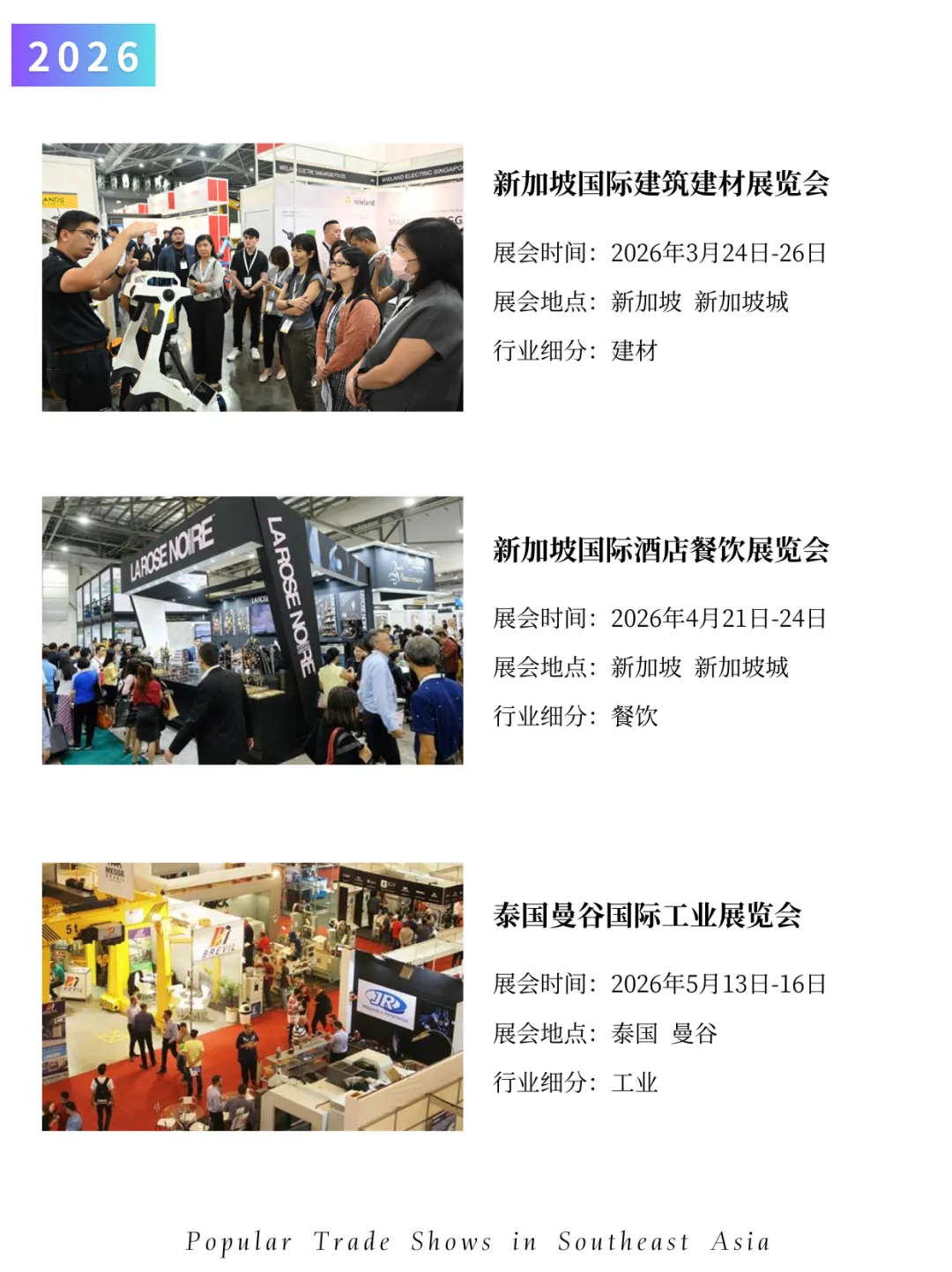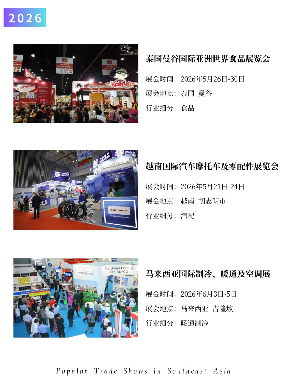 ?更多东南亚展会、东南亚商务考察、2026展会、展会时间、展会信息、参展注意事项、企业参访行程安排、东南亚市场、商务考察团等精彩内容我将会持续更新分享哦~