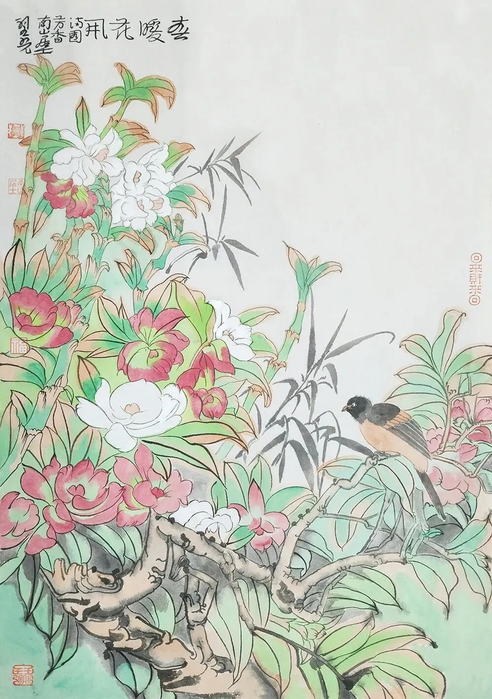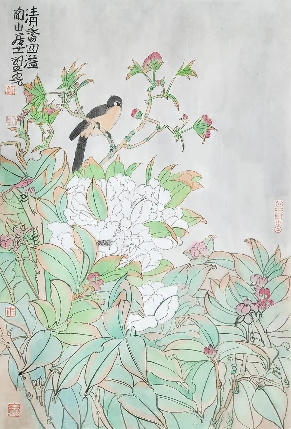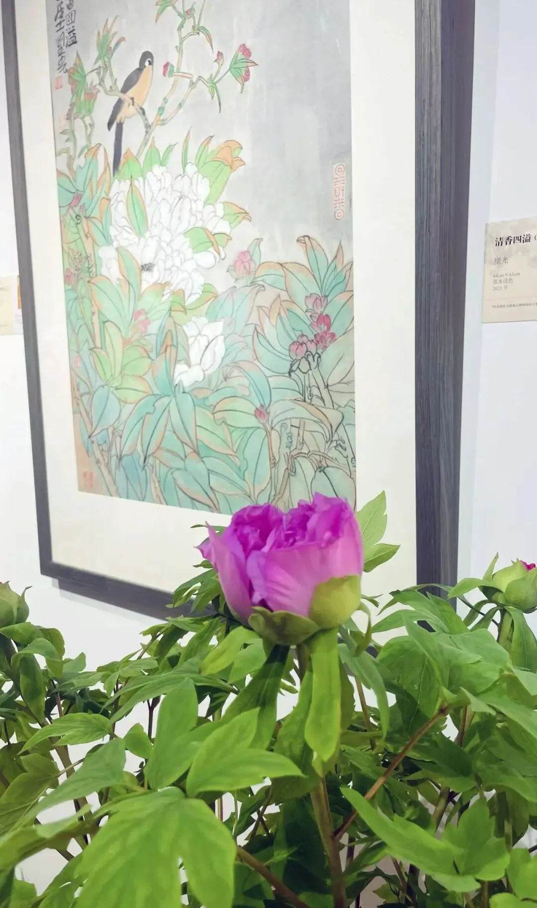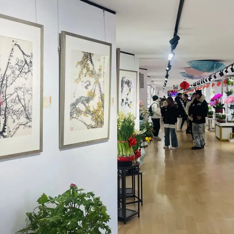 农历丙午马年将至,正值游园旺季,北京市海淀区园林绿化局将圆明园中摆满各种鲜花,举办“繁花贺岁、吉事迎春”系列活动。为此,圆明园管理处和《中国书画》杂志社共同策划了“春色满园•2026圆明园中国画名家花卉主题作品迎春展”,将40余件花鸟画佳作呈现于圆明园海棠艺术馆。所展出的中国画作品和现场鲜花盆景珠联璧合、相得益彰。花鸟画是传统中国画中重要的一个画科,且历代名家辈出。比如五代黄荃、徐熙,宋徽宗赵佶,元代钱选,明代陈洪绶、文征明、徐渭,还有清代赵之谦、任伯年,近现代的吴昌硕、齐白石、潘天寿、李苦禅等画家均有不少花鸟画佳作传世,不胜枚举。可以说,从历代花鸟画的代表画家和作品中,足以窥得中国绘画史发展的某些端倪。本次展览所邀请到的10位中青年画家,都是当代花鸟画领域较为活跃的代表性作者。他们艺术风格各具特色,格调颇具高度,亦有较广泛的学术影响。