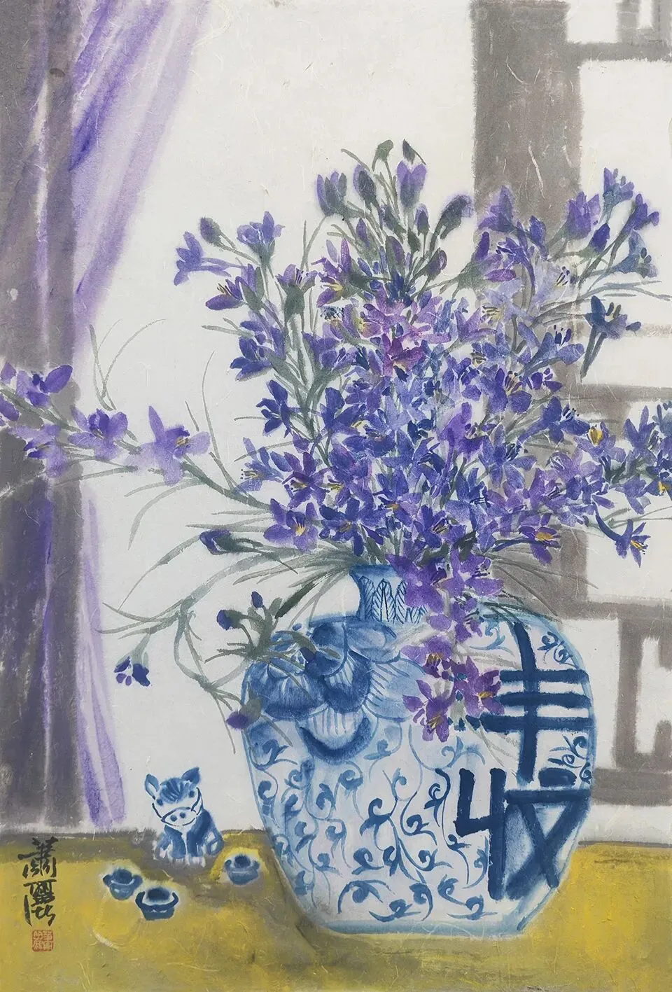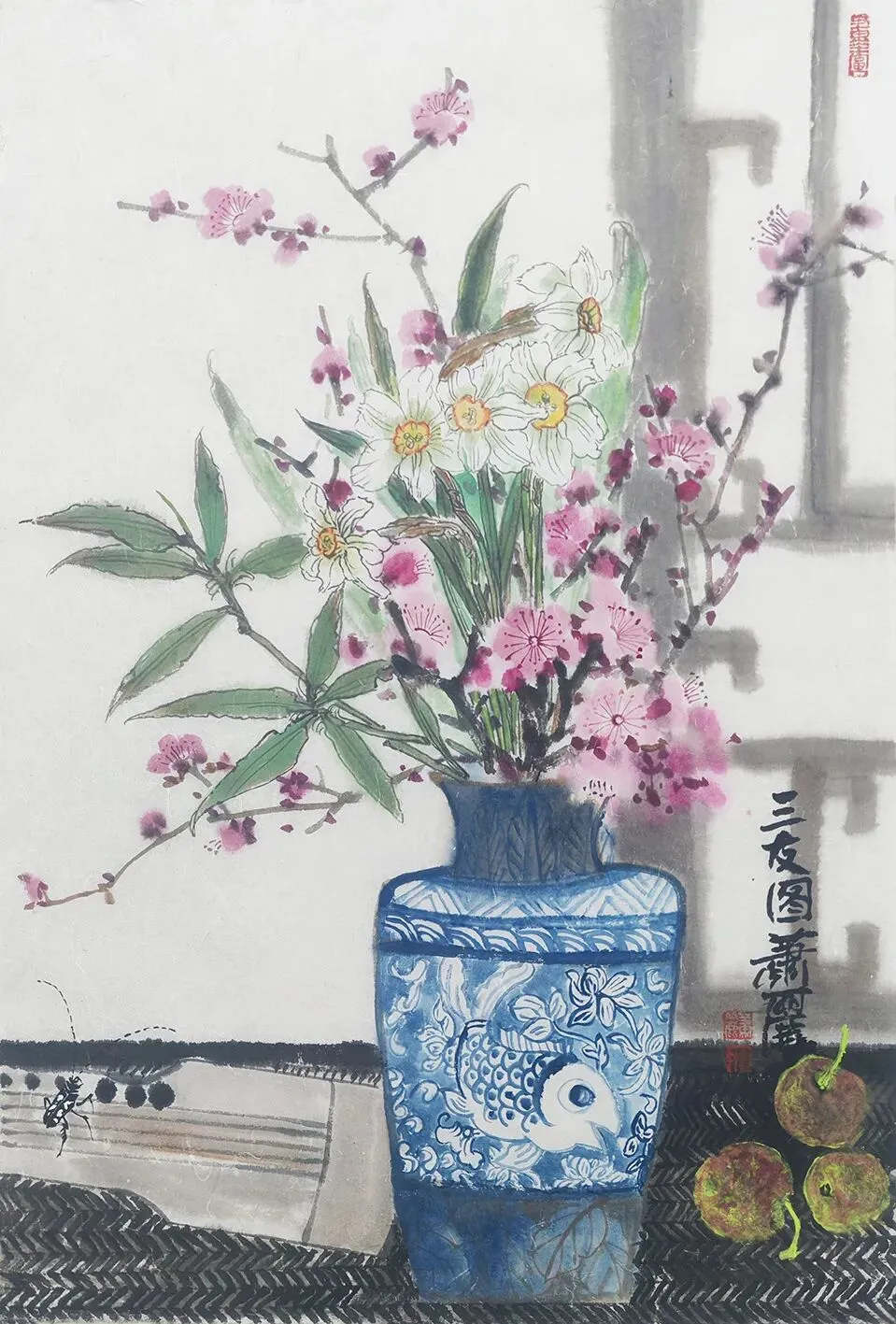 萧丽 三友图(梅花、水仙花)