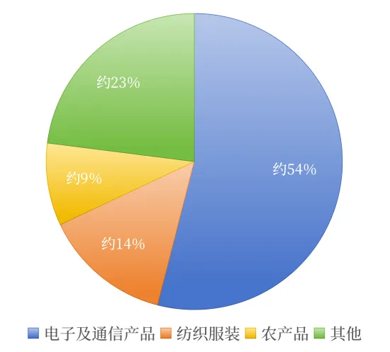 核心优势:产业集中于劳动密集型与中低端制造业,电子及通信产品(智能手机、电子元件、家电组装)、纺织服装(成衣、家纺)、农产品(咖啡、大米、水产品)为三大出口支柱,合计占出口总额的75%以上;