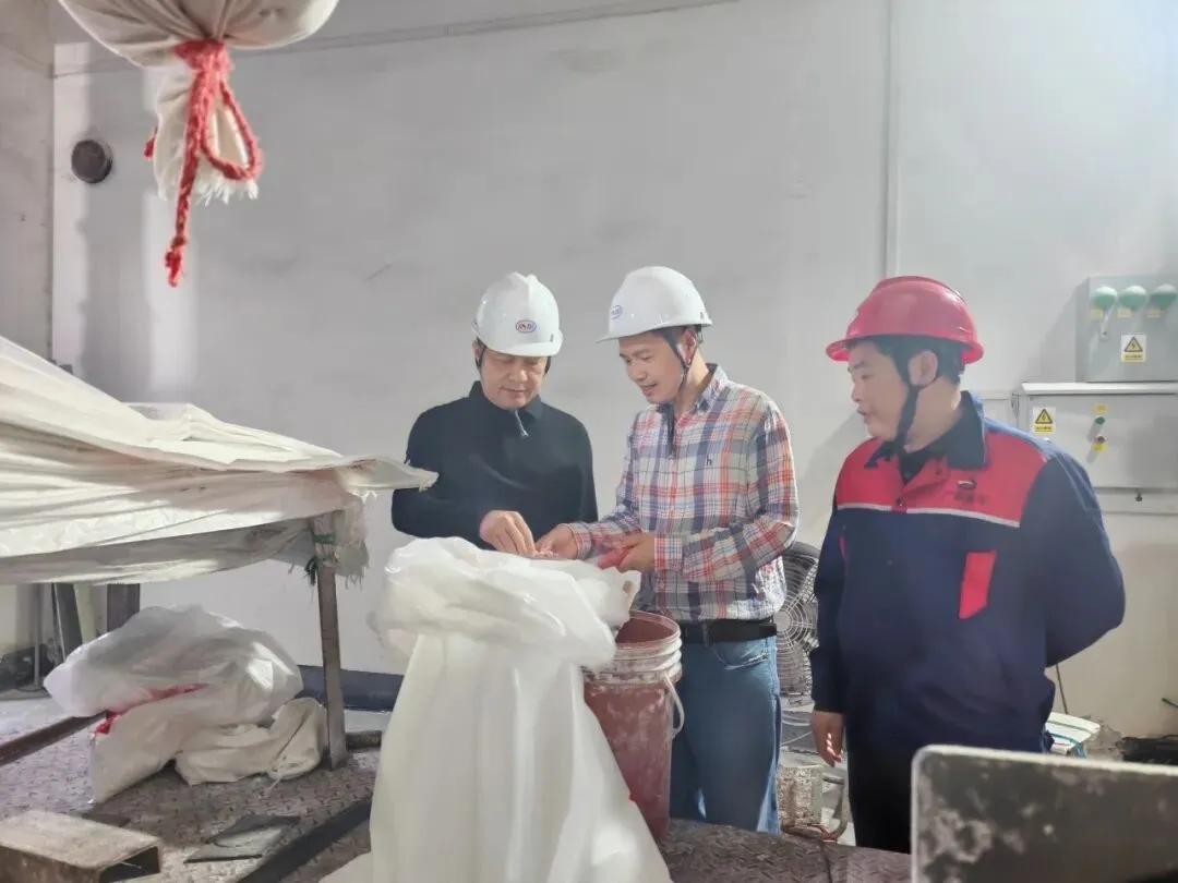 公司董事长林洁(左一)带队到现场查看企业生产情况