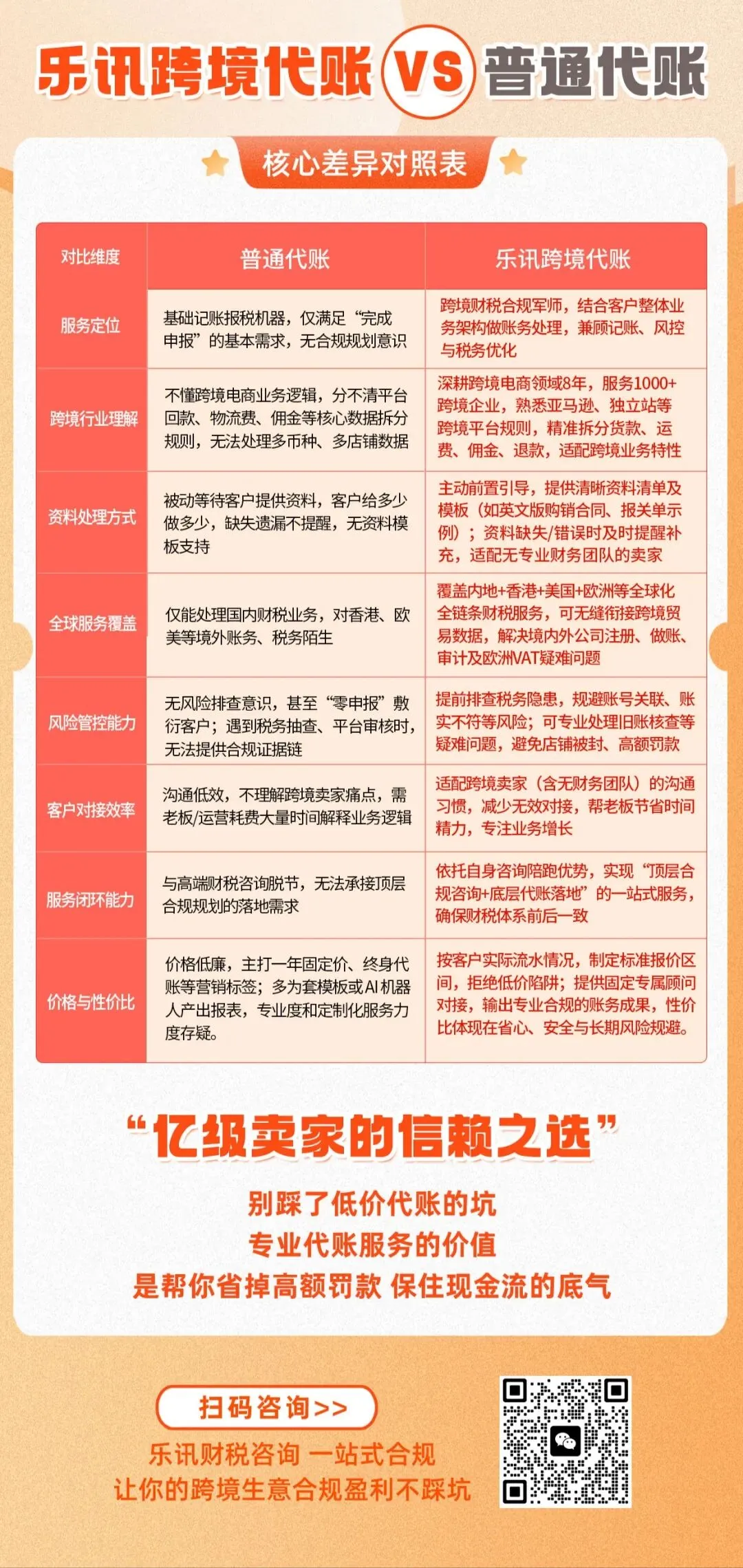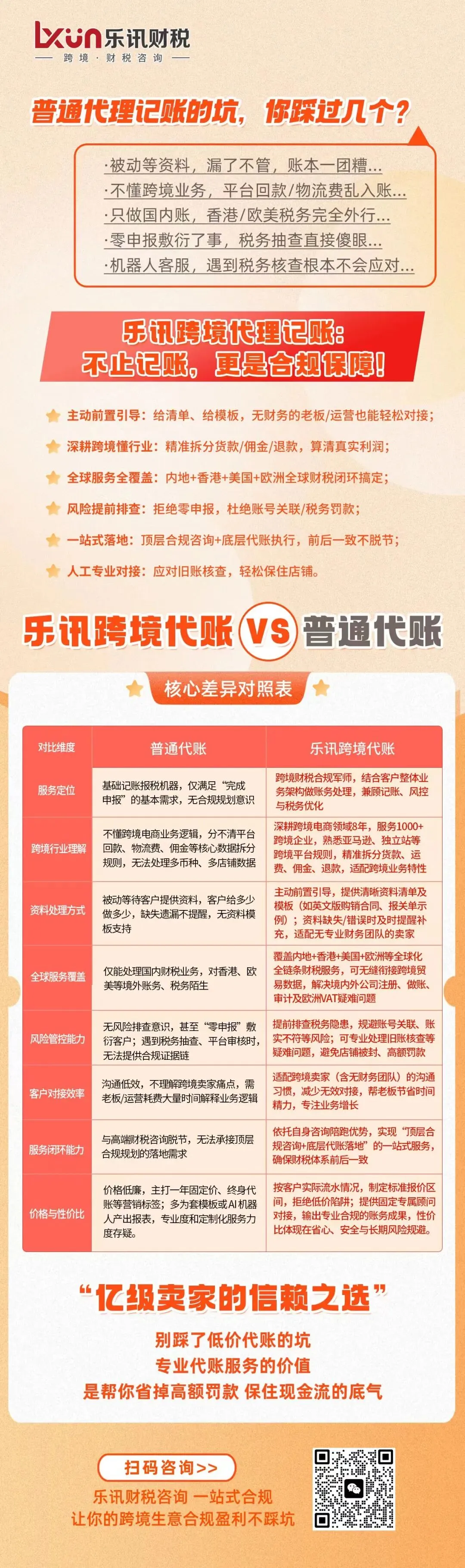 普通代账是“记账机器”,乐讯跨境代账是“合规军师”;