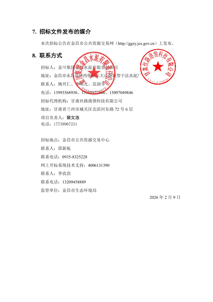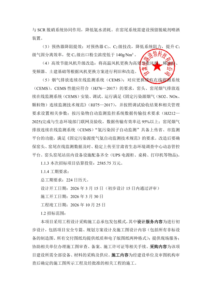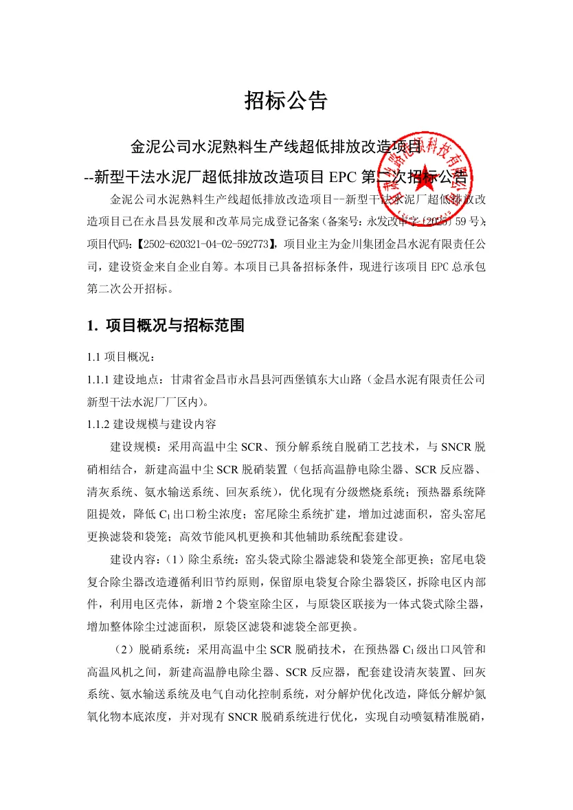 金昌水泥有限责任公司熟料生产线超低排放改造项目EPC(二次)招标公告