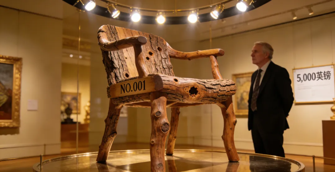 谁买?不是买家具过日子的人,是收藏家和艺术馆。这些椅子被当成雕塑卖。每一把椅子都有唯一的编号,带着树皮的纹理、虫咬的坑、嫁接的疤。