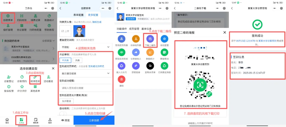 完成以上步骤后,将下载好的二维码打印张贴在活动现场,或通过微信转发给参与者,参与者只需扫码就能3秒完成签到,全程无接触、高效率。更贴心的是,访客宝会实时统计签到数据,自动生成可视化报表,支持Excel一键导出,无需人工核对,彻底告别纸质台账的繁琐。