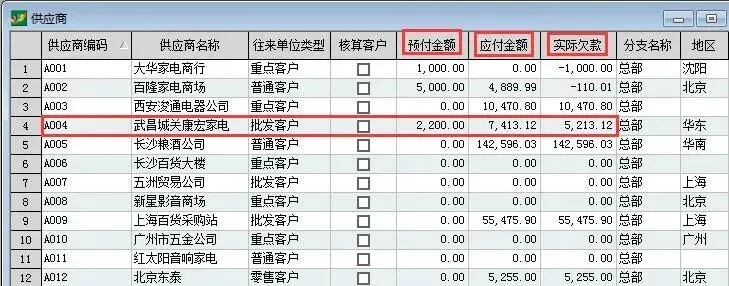 单据保存以后,再来看供应商资料,款项已经冲掉了