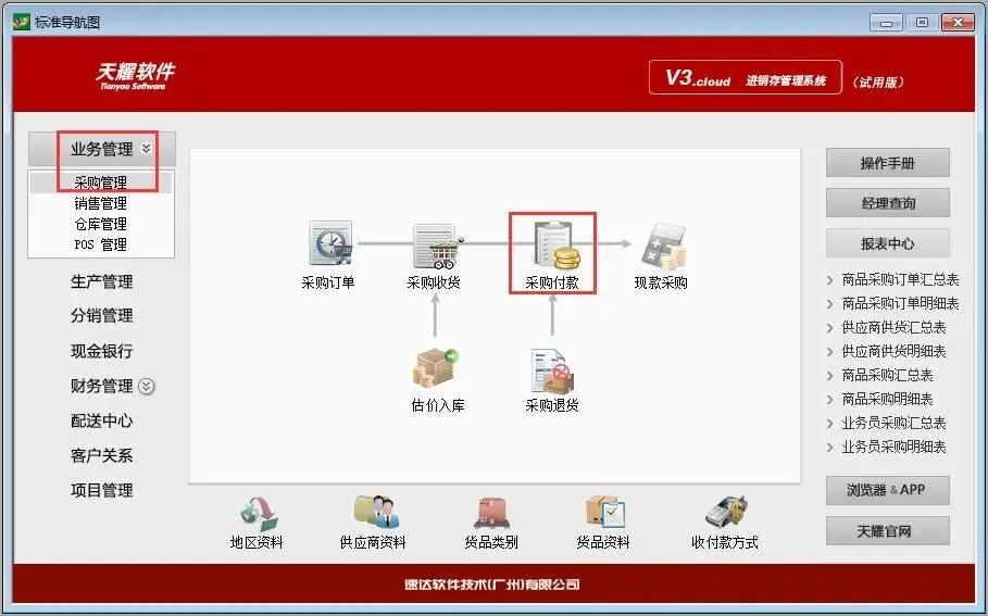 点击:业务管理中的采购管理——采购付款
