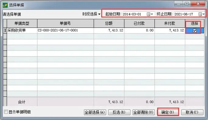 选择时间段,将相关单据勾选,确定,引入单据明细中
