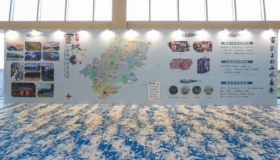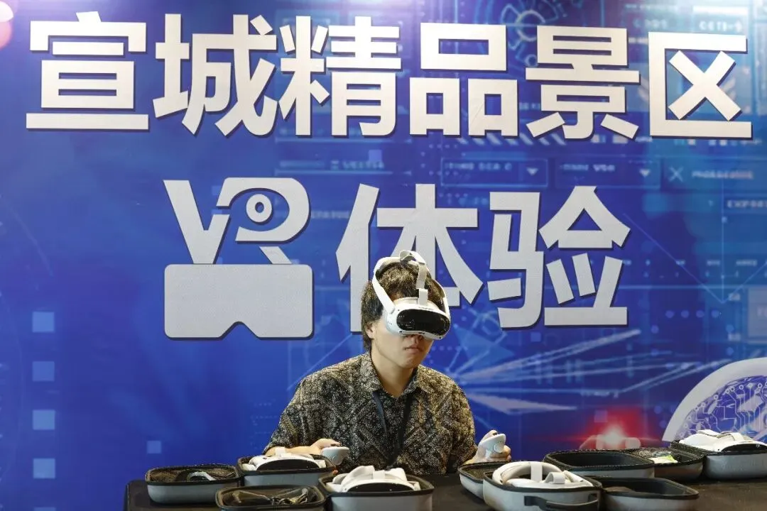除此之外,还在博览会现场精心设置了四大体验区域,科技赋能成为亮点。在数字沉浸体验区,一幅长达6米的AI全息长卷《宣纸故里·四宝巡礼》动态呈现了主题线路的精华,山水实景与艺术创作虚实交融。观众可佩戴VR设备,“穿越”至宣城的敬亭山、太极洞等景区,获得沉浸式“云游”体验。