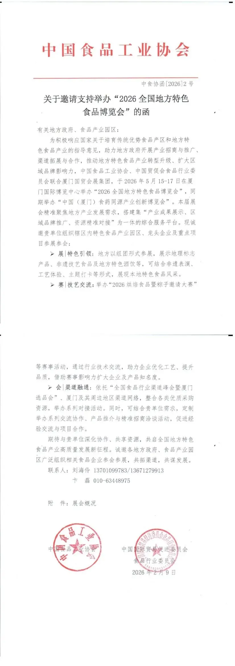 【函】关于“2026全国地方特色食品博览会”的邀请函