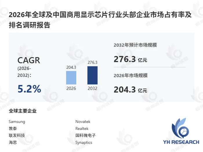 以下内容来自恒州诚思YHResearch出版的《2026年全球及中国商用显示芯片行业头部企业市场占有率及排名调研报告》,同时提供英文,日文,韩文等不同语种版本报告。