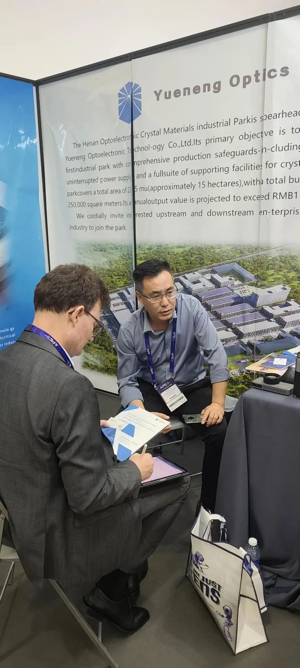 展会期间,悦能光电的展台吸引了众多激光设备制造商、科研机构和光电系统集成商的关注。许多专业访客对公司展示的超大尺寸LBO晶体样品表现出浓厚兴趣。