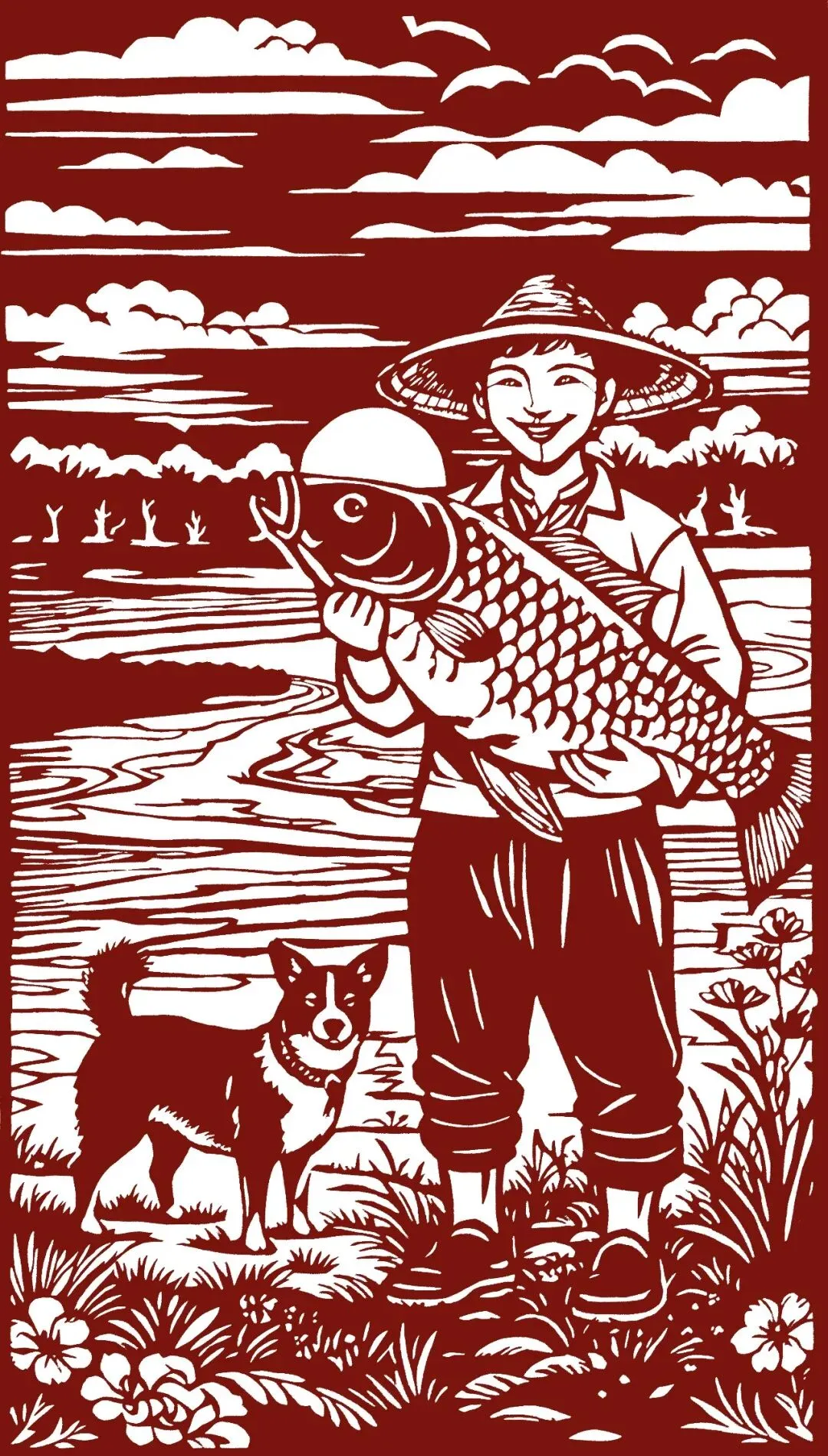 作品介绍:东明黄河鲤鱼,得益于黄河优质水源与天然环境。沙窝镇生态养殖区秉持“人放天养”理念,在二百余亩水域中自然培育数十万尾鲤鱼。其外观金鳞赤尾,肉质莹白紧实,清蒸鲜甜,红烧醇厚,滋味鲜美,别具风味。东明“生态鲤鱼”畅销全国,真正实现“渔”利百姓、“鱼”跃振兴。《黄河鲤鱼》以乡间童趣为基调,呈现少年怀捧鲤鱼、爱犬欢跃相迎的喜庆场面,寓意丰收富足。诚迎四方宾客至东明品尝这份黄河的馈赠!