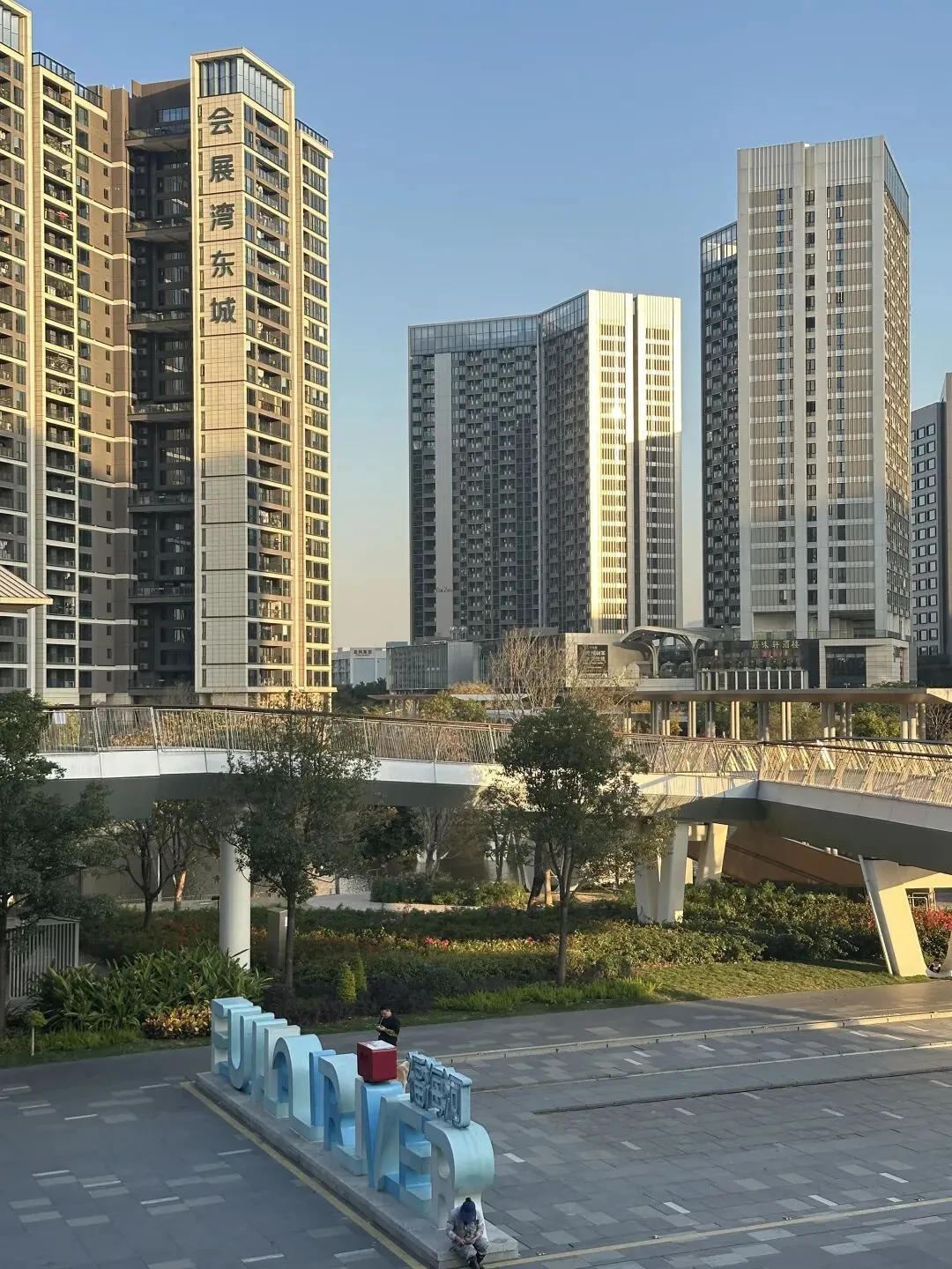 深圳新会展中心落成投入使用也6年有余了,规划展览面积50万平方米,其中已建成的一期展览面积已达到40万平方米。根据官方公布的展陈信息,2024年在此举办的第26届高交会确实达到了40万平方米的展览面积。新会展中心2010年前后就开始谋划,其时正是珠三角地区产业腾笼换鸟向高端化科技化逐步转型的时候,广州、东莞的会展都有30万平方米的展览规模,唯独深圳福田中心区的会展中心,尽管也是2004年才开展,但是规模只有10万平米,未免捉襟见肘。当时业界普遍认为会展产业具有极强的带动效应,北京、上海也都在建更大规模的会展中心,深圳急切的想要争取更大展览面积也就不难理解。选址一开始就存在较大争议,当时的深圳,区域地位远不及今日,机场旅客吞吐量只有2000万左右,而广州大约4000万,香港大约5000万;2025年广州达到了8000万,深圳超过香港达到了6600万。大家对于深圳机场或者说深圳在大湾区(当时还没有大湾区的概念)的地位其实是看不清的。那么把这么大一个会展中心建在相对偏远的机场旁边,就是一个很大的争议。当然从选址本身来说,这个位置是绝佳的,当时东莞的滨海湾新城已经开始填海造陆,前海、南沙名气也逐步打开,临近机场办会展,对于国际化展览的促进作用是显而易见的。当然更大的目标其实是,通过会展中心这个大项目,把这一片区打造成新的城市中心区,至少是不亚于南沙的影响力的中心区。会展中心也如规划设想一一建成了,比如周边的公寓、酒店,以及开凿出来截污的福海河。确实也建成了一个中心区的样子,建设细节很用心,过街天桥、卫生间、电梯、慢行道,标准都很高。只是确实是冷清了些,即便是在工作日的下班时间,这里依旧车流稀疏,行人偶见,夕阳西下,一片崭新而空旷的城区景象,在深圳应该也是绝无仅有的。此处并没有批判的意思,只能说新会展的建设有点生不逢时,2019年底开幕,后面是3年的冷清时光。而福田会展中心是在2004年开幕,几乎是在福田中心区初步建成的同时,天时地利人和;很难说是中心区的企业促进了会展的繁荣,还是会展的繁荣吸引了更多企业的集聚,总之彼此成就了。当然我们还是要有客观而积极的心态来看待这一切,行业有周期,经济有周期,空间的发展也有其节奏;只要大湾区依然是国际瞩目的中心、新兴产业聚焦的地方,那么处于这么核心区域的会展中心以及周边的会展城,总会有她绽放的一天。