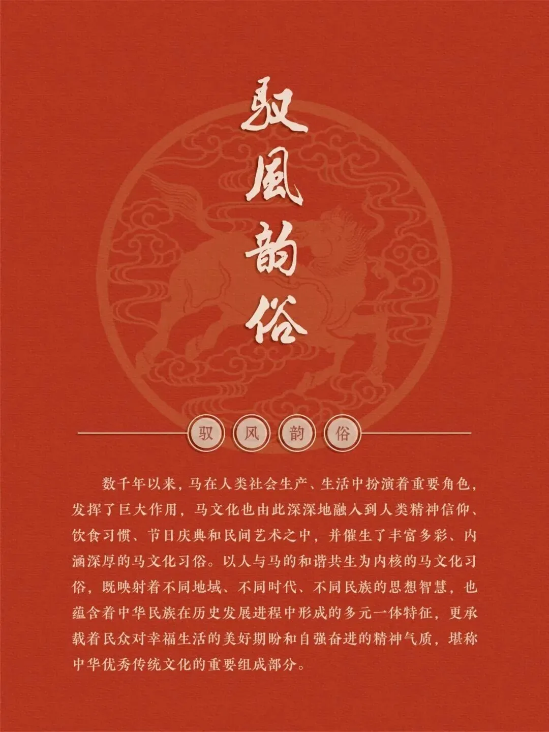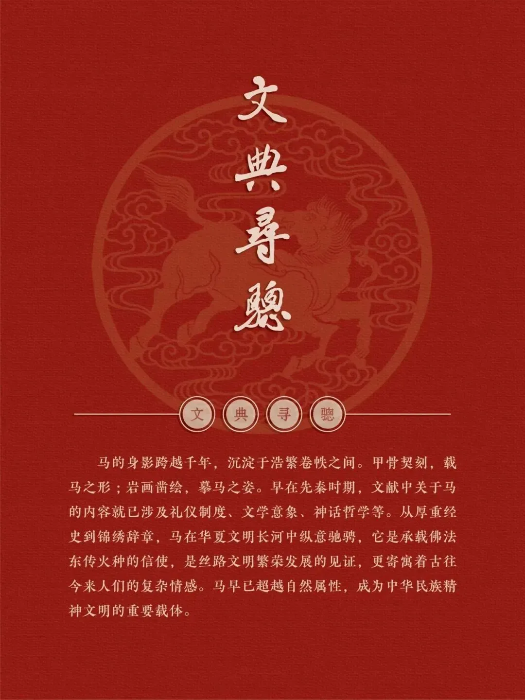 马,自古便是中华民族心中的祥瑞灵物与精神象征。从典籍中的笔墨印记到民俗里的吉祥寓意,从诗词歌赋中的“春风得意马蹄疾”到传统年俗中的骏马图腾,马早已超越单纯的动物属性,承载着人们对奋进自强、顺遂安康的美好期许,更成为中华年文化中不可或缺的重要元素。