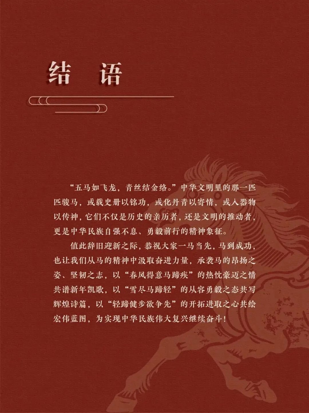 “五马如飞龙,青丝结金络。”在这策马扬鞭、福启新岁的新春佳节里,我们以展览为桥,串联起典籍中的年俗记忆与当下的新春盛景,传递中华年文化的温度与力量。衷心祝愿每一位朋友,马年新春快乐,身体健康,阖家幸福,万事顺遂,愿大家在新的一年里策马扬鞭、逐梦前行,不负韶华、马到成功!