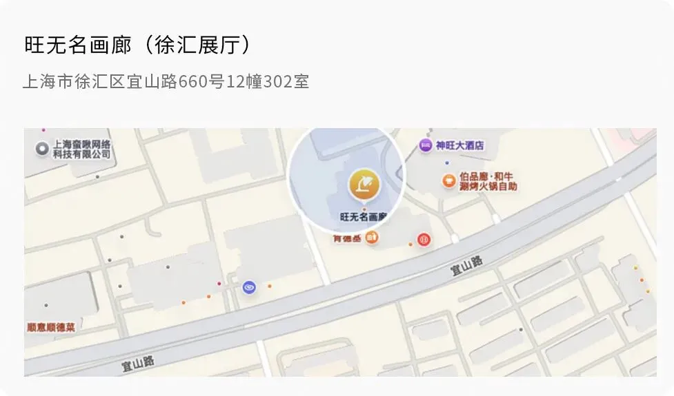 画廊地址:上海市徐汇区宜山路660号302室(徐汇展厅)