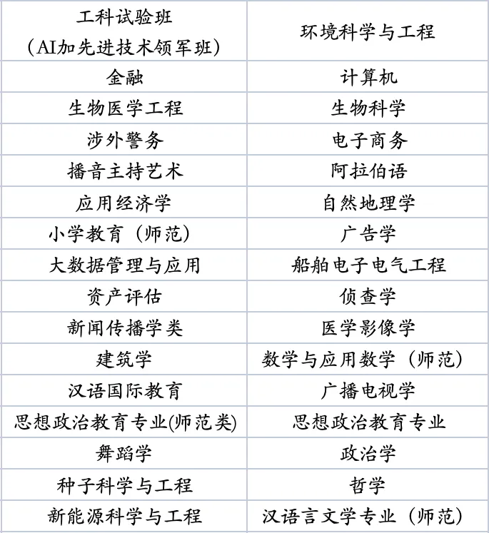 交流高校及专业