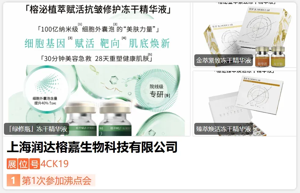 榕嘉生物成立于 2014 年,系上市公司上海润达医疗控股子公司,是高新技术企业与上海市专精特新企业。公司深耕免疫组学、代谢组学等核心领域,以专利技术与自研设备为支撑,倾力打造天然外泌体护肤品牌榕泌 R MODULAR。品牌源自国际生物医学实验室专利技术,融合自主研发的植物外泌体提取、筛选、检测与稳活技术,将植物再生精萃活性因子浓缩,缔造实验室级精准护肤新体验。-展位号:4CA17-