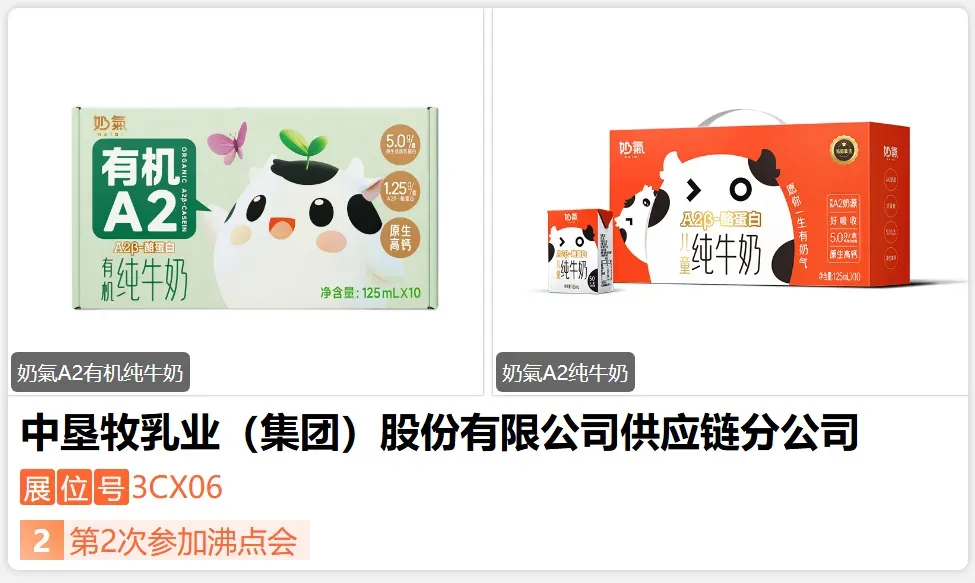 中垦牧乳业(集团)股份有限公司是国内少有的乳业全产业链一体化运营的乳品企业,有近百年的历史传承,是农业部农垦局打造农垦国际大乳商的重要载体。拥有7个自有牧场(万头牧场3个),存栏奶牛4.5万头;4个加工基地,年乳制品加工能力60万吨;1个***博士后科研工作站,1个***乳品工程心;3个中国***。奶氣是中垦牧乳业旗下专注儿童牛奶的品牌,国企背书,品质更安全放心。-展位号:3DF01-
