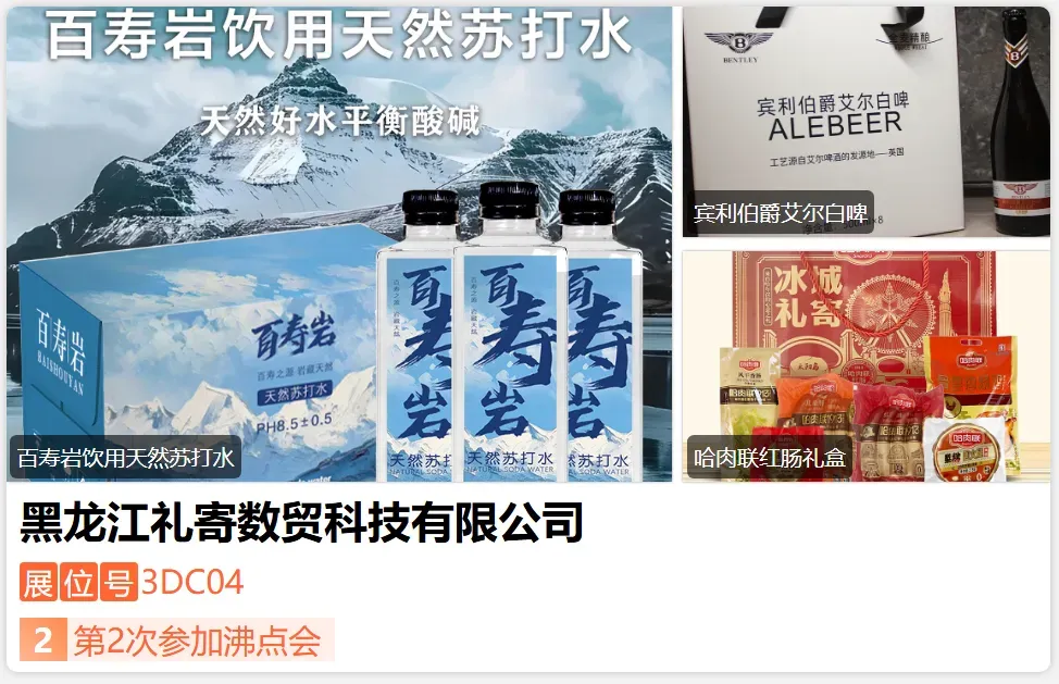 “龙江礼寄”是以传承黑龙江地域特色产品集合为初衷,宣传黑龙江省 13 个城市甄选东北特产,贯穿黑龙江地域特色,以“龙江臻选,礼遇中国”为核心,打造集文化体验、消费、传播于一体的特色品牌。通过甄选 13个地级市代表性特色产品,推动黑龙江非遗、老字号及文创产品走向全国,成为黑龙江文化旅游的“伴手礼名片”。-展位号:3DE01-