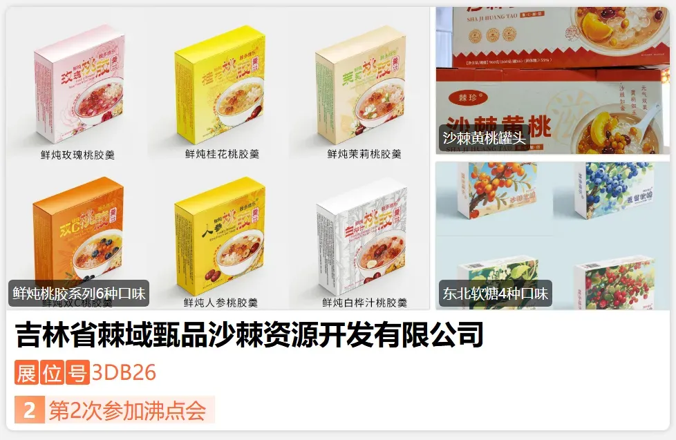吉林省棘域甄品沙棘资源开发有限公司坐落于“中国医药城”吉林通化,是集研发、生产、销售、OEM代工于一体的现代化实业企业。十二年电商积淀后2024年战略升级,深耕东北特色物产,构建全品类经营体系,主营沙棘、人参、虎眼万年青、鹿制品等系列,涵盖罐头食品、粉剂、代用茶及果蔬制品、蜂产品、调味料等多类产品;坚守质优价廉、消费者至上理念,以创新研发与严苛品控打造标杆品牌,致力做大做强棘域甄品,赋能健康产业发展。-展位号:3DX05-