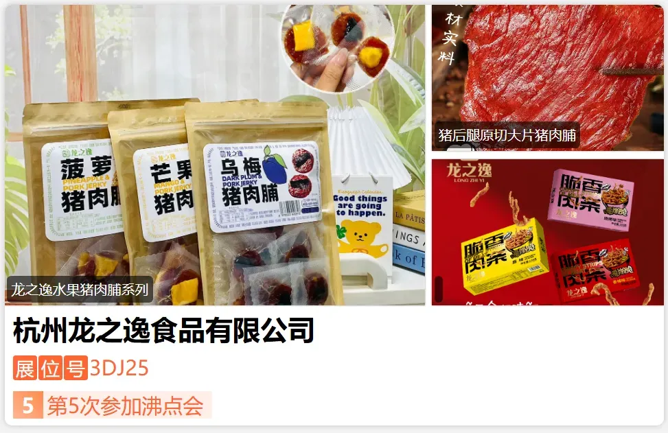 “龙之逸”品牌创始人林逸钦,专业从事肉制品研发生产,融合发展为一体,专业服务商,公司主要产品脆香肉条、原切大片猪肉脯系列产品及肉干、风干肉、肉粒、盐焗产品、肉松、烘焙肉松、酒曲香肠、肉铺系列产品,欢迎各渠道朋友前来洽谈,指导、合作。-展位号:3DC01-