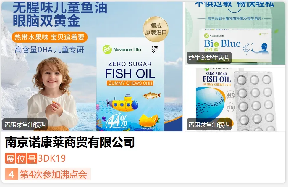 诺康莱,作为健康领域的创新先锋,凭借对市场的敏锐洞察力与强大的产品研发能力,致力于解决女性抗衰、儿童成长、老人慢病等方面的健康问题。以消费者需求为驱动,率先推出了具备领先技术的Omega - 3系列产品。该系列产品不仅服用便捷且形式新颖,在体验上表现良好,更重要的是拥有确证的健康功效,为消费者的健康生活提供有力支持。-展位号:3DK01-