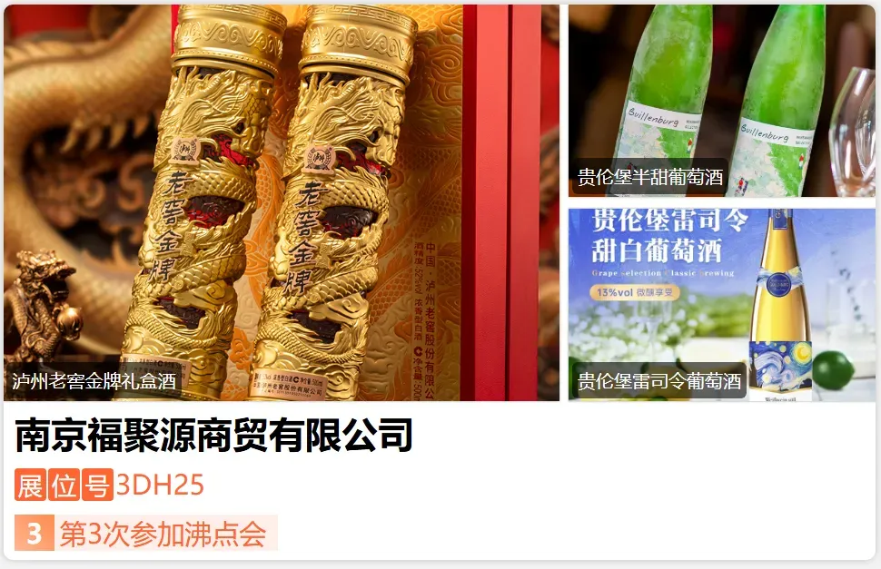 福聚源供应链深耕公众号,快团团和群接龙等私域社群,打造过多款爆款,如:加拿大冰酒,德国雷司令,咖啡无醇起泡酒,日本清酒等等。中秋好礼,匠心臻选! 本次展会,福聚源供应链带来多款精美中秋礼盒,更有数款设计中的惊喜新品即将揭晓!同时,支持OEM订制服务(最低100箱起),为您打造专属心意。-展位号:3DX01-