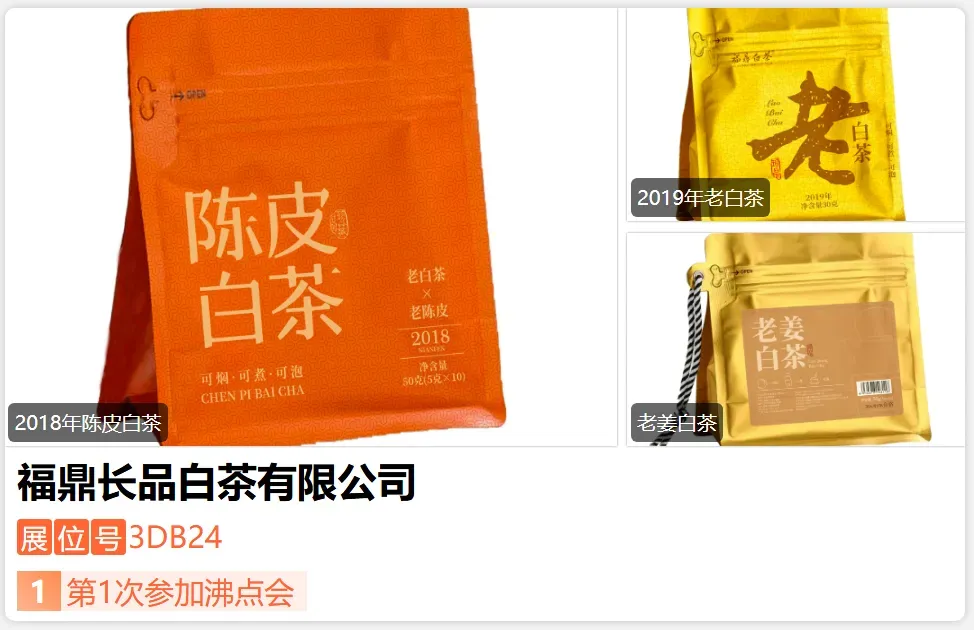 ***龙头企业,自有山场基地 加工 年份茶仓储,这次春季开年展,将给大家带来福利品 七年陈老白茶,多款养生调味茶 陈皮白茶 ,老姜白茶,配伍老白茶 铁皮石斛、陈皮、灵芝红枣的五福临门, 都做成独立便携包装,这些茶都可焖可煮可泡,不挑泡法 怎么泡都很好喝 还很健康养生,也有大分量、实惠装老白茶,在D馆3DB24,好茶宜长品-展位号:3DJ23-