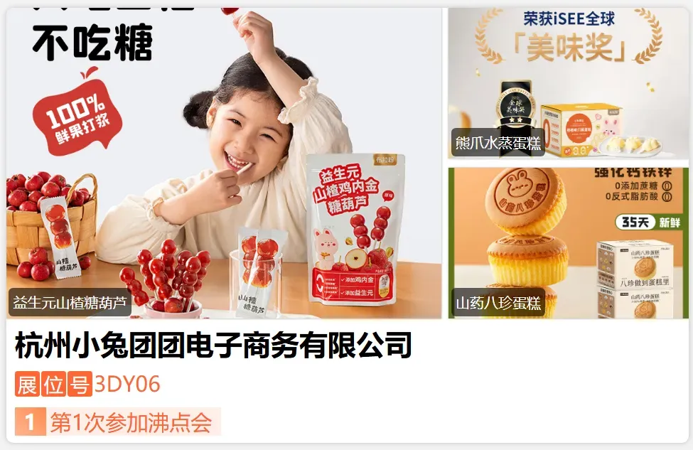 小兔团团品牌成立于2021年,以健康、安全、营养为理念的婴童食品品牌、覆盖零辅食超百种产品。全网爆款益生元山楂鸡内金糖葫芦突破60W+销量,蝉联榜首30天!全网爆款熊爪蛋糕,是抖音官方的儿童糕点榜一产品~日销千单!荣获ISEE全球美味奖!线下入驻超千家母婴店/大型超市。-展位号:3DA23-