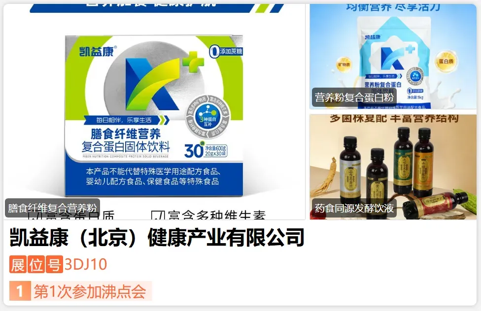 凯益康成立于2014年,系马大姐食品集团旗下核心企业,牵头起草行业团体标准,获授多项行业资质及“老年营养实践基地”称号;与多所高校及专业机构建立联合研发机制,组建跨领域专家团队,累计承担省市级科研项目270余项,获授权专利50余项 ;-展位号:3DJ15-
