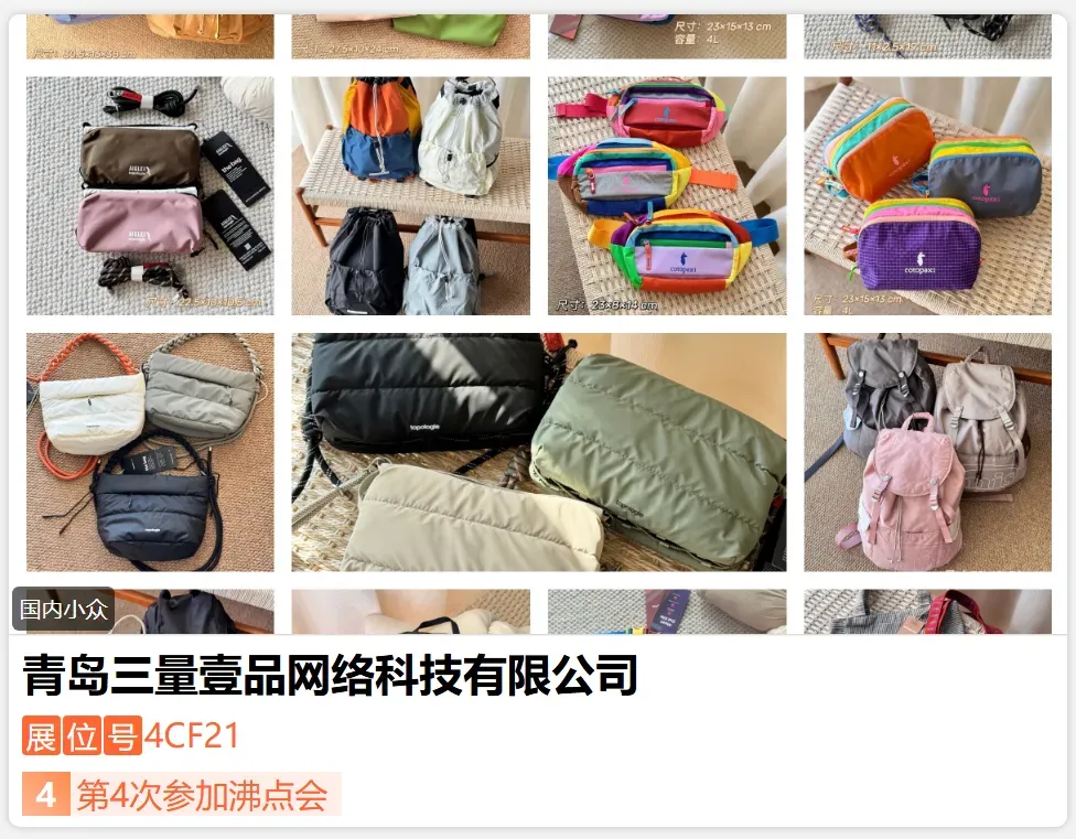 青岛三量壹品网络科技有限公司曾为欧美二三线、日韩三四线做过代加工,品质毋庸置疑。立足中国设计,服务全球品味。三量壹品融合东方匠心与国际潮流,供应链辐射世界,品质统一,服务无界。无论您在何处,都能享有专属定制与全球联保,让每个包裹,都满载满意。-展位号:4CE06-