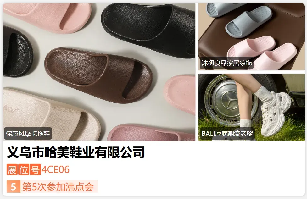 义乌市哈美鞋业有限公司,无印良品供货商;辛选供应商;众多社区团购及供应链的供应商(骄傲 闯货 嗨团 趣趣 海涛 等等......)-展位号:4CY18-