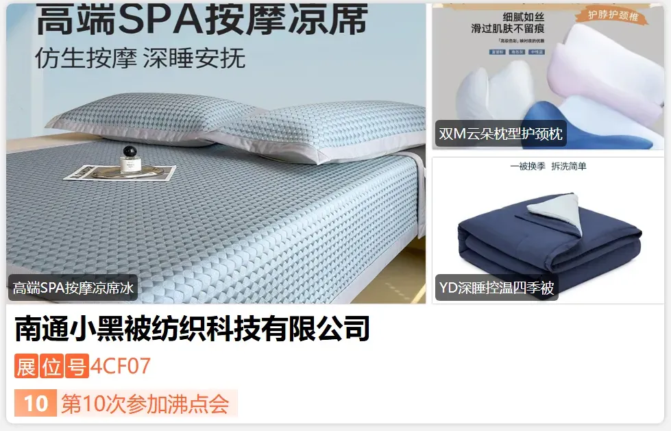 南通简恒纺织科技有限公司创立于2021年,是一家充满活力与创造力的年轻家纺企业,汇聚行业新锐力量,以敏锐的时尚触觉和持续的产品创新能力为核心驱动。简恒纺织始终聚焦市场前沿趋势,将科技、美学与舒适体验深度结合,致力于打造时代的家纺精品。凭借精准的研发与快反能力,简恒纺织已实现“年年有爆款”的市场佳绩,用实实在在的产品力赢得消费者信赖,持续为全球家庭注入美好生活新灵感。-展位号:4CL27-