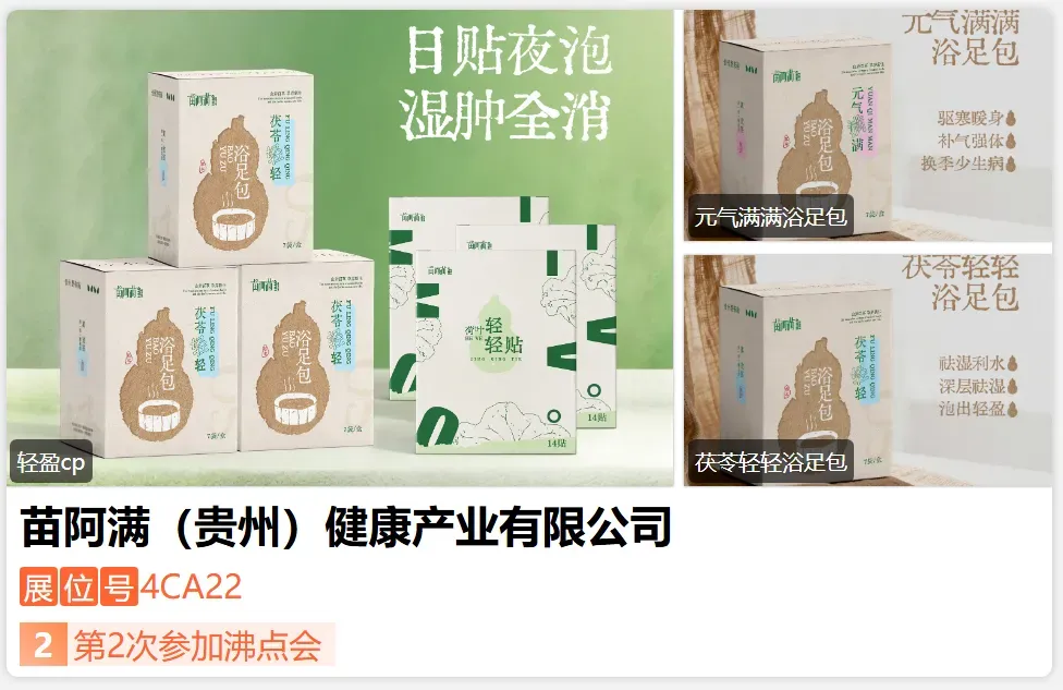 苗阿满,专注将非遗苗药转化为现代“轻养生”方案。围绕日常养生需求,打造了多形态产品矩阵:泡浴、贴剂、精油等,所有产品均遵循“天然、温和、安心”理念,精选道地药材,在制药级车间生产,通过多项权威检测,确保安全有效。我们的产品已获山姆等头部渠道验证,复购表现优异,苗阿满可以为合作伙伴提供从品牌授权到柔性供应链的全套支持,让非遗价值轻松转化为市场竞争力。-展位号:4CB26-