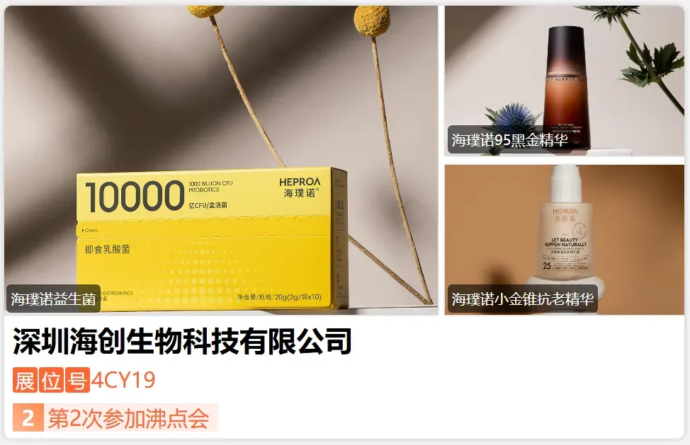 海璞诺研发团队拥有30年免疫研发经验,曾为多家上市药企提供科研支持,团队发表论文300余篇,提交60多项发明专利。海璞诺曾获广东省科技进步奖特等奖及化妆品创新原料奖、中国抗衰老促进会团体标准起草单位、亚太免疫大会“国际金奖",并于26年和新华网等官媒达成战略合作,预计26年2月官宣首位代言人,海璞诺多次单场破千万GMV,复购率高达80%,支持所有渠道团长来深圳大学海璞诺实验室溯源。-展位号:4CG03-