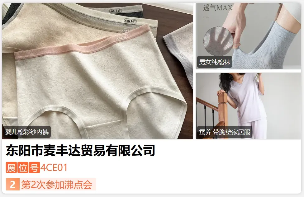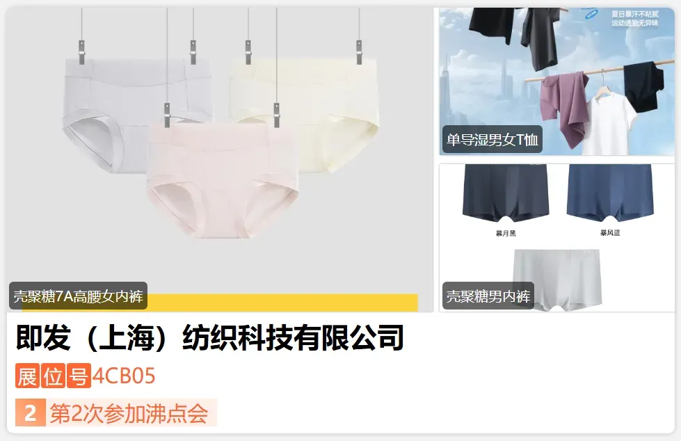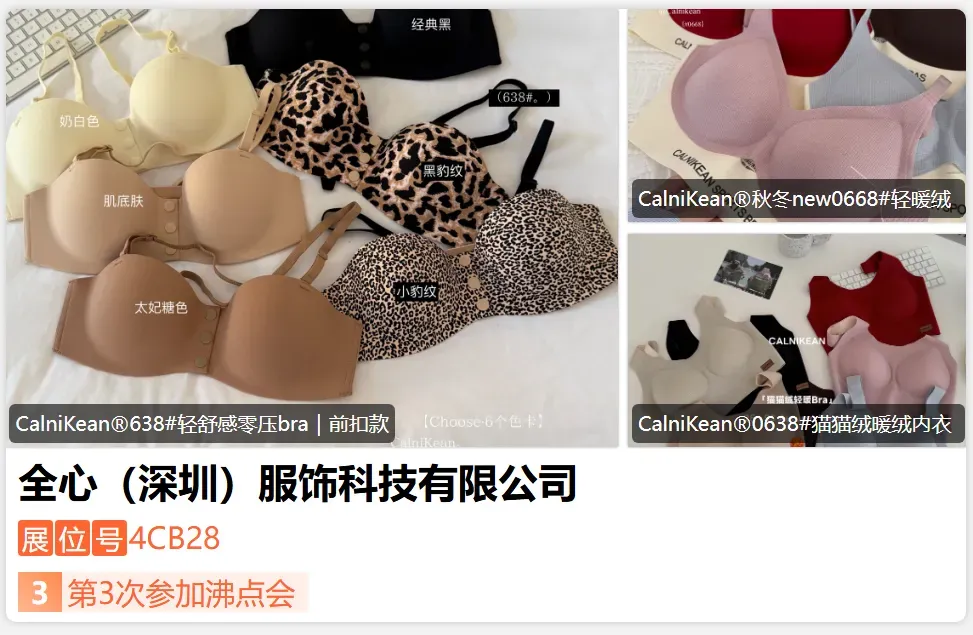 全心服饰是一个专注于内衣及贴身衣物的品牌,致力于为消费者提供高品质的穿着体验。注重品质与设计的结合,主打年轻消费群体,强调对生活的热爱和对自由、舒适的追求。市场定位以高性价比为特色,通过团购、盲盒等形式推出优惠活动,吸引年轻消费者,尤其在内衣领域注重品质与价格的平衡。通过不断创新和优化产品,满足现代消费者对舒适与美观的双重追求。-展位号:4CD01-